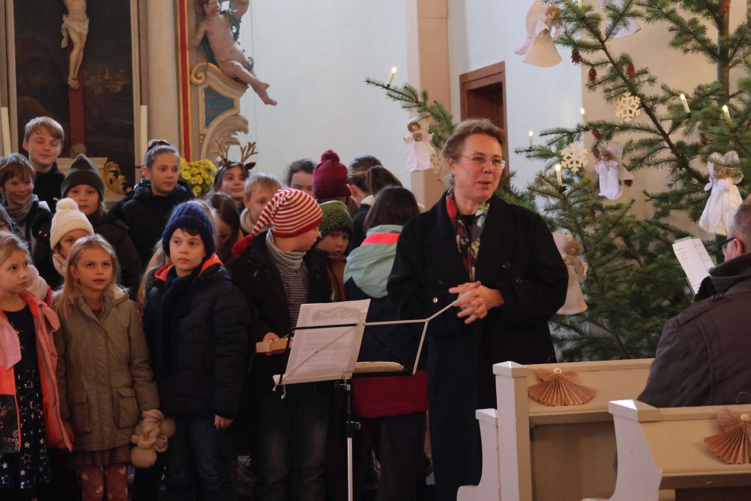 Vor etwa eineinhalb Monaten hat Ingo Wagner angefangen, mit den Kindern zu üben. Das geschah sowohl im Musikunterricht, als auch parallel an den Nachmittagen. Er war selbst überrascht, dass in diesem Jahr so viele mitmachen wollten. Und auch wenn dieser oder jener nicht perfekt singen konnte, ausgeschlossen wurde niemand. Einen temporären Chor gibt es zudem immer an der Schule. Und so war es kein Wunder, dass die Kirche an diesem Nachmittag voll besetzt war. Auch Pfarrerin Dorothea Sitzler-Osing freute sich und ließ es sich nicht nehmen, die Gäste zu begrüßen.