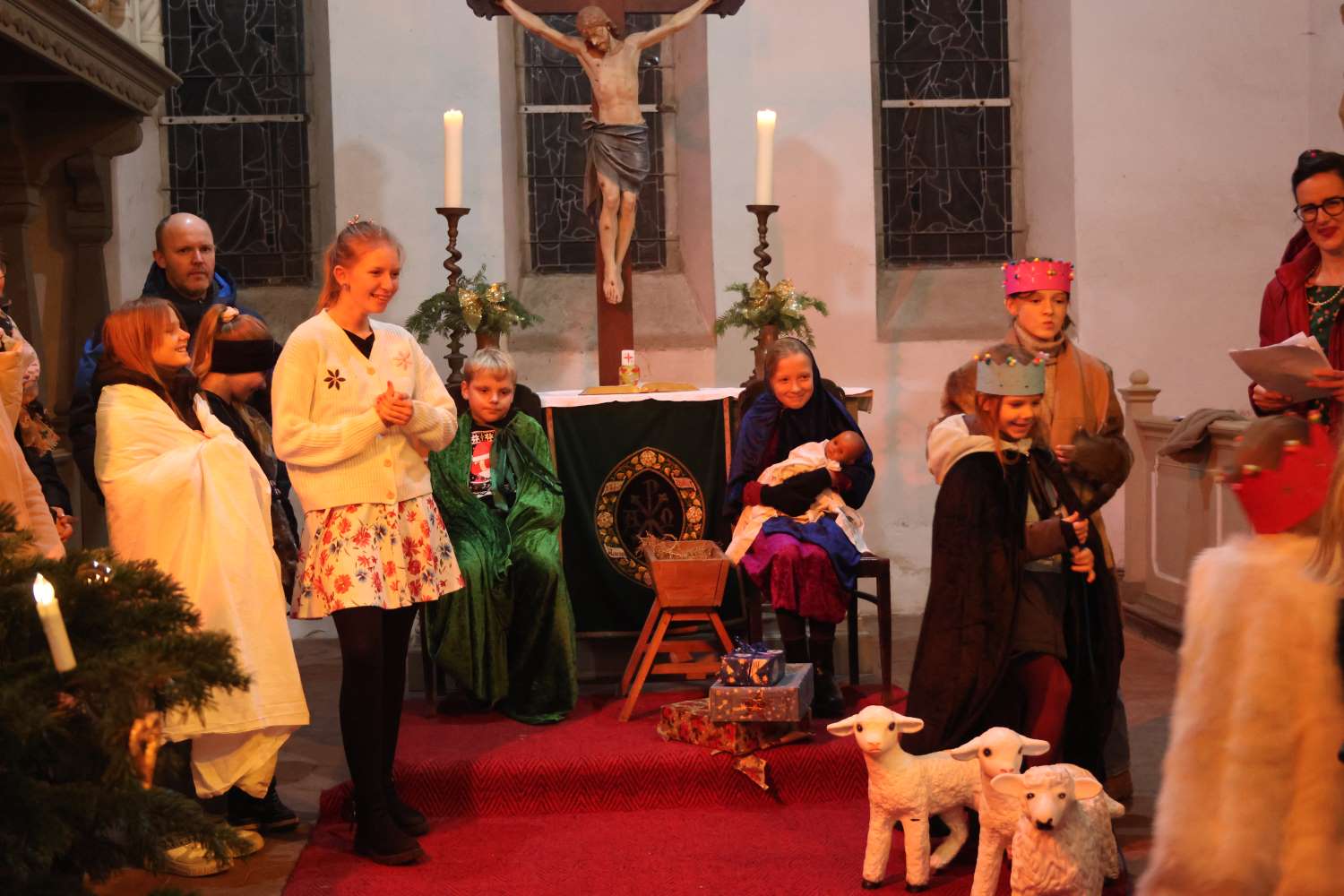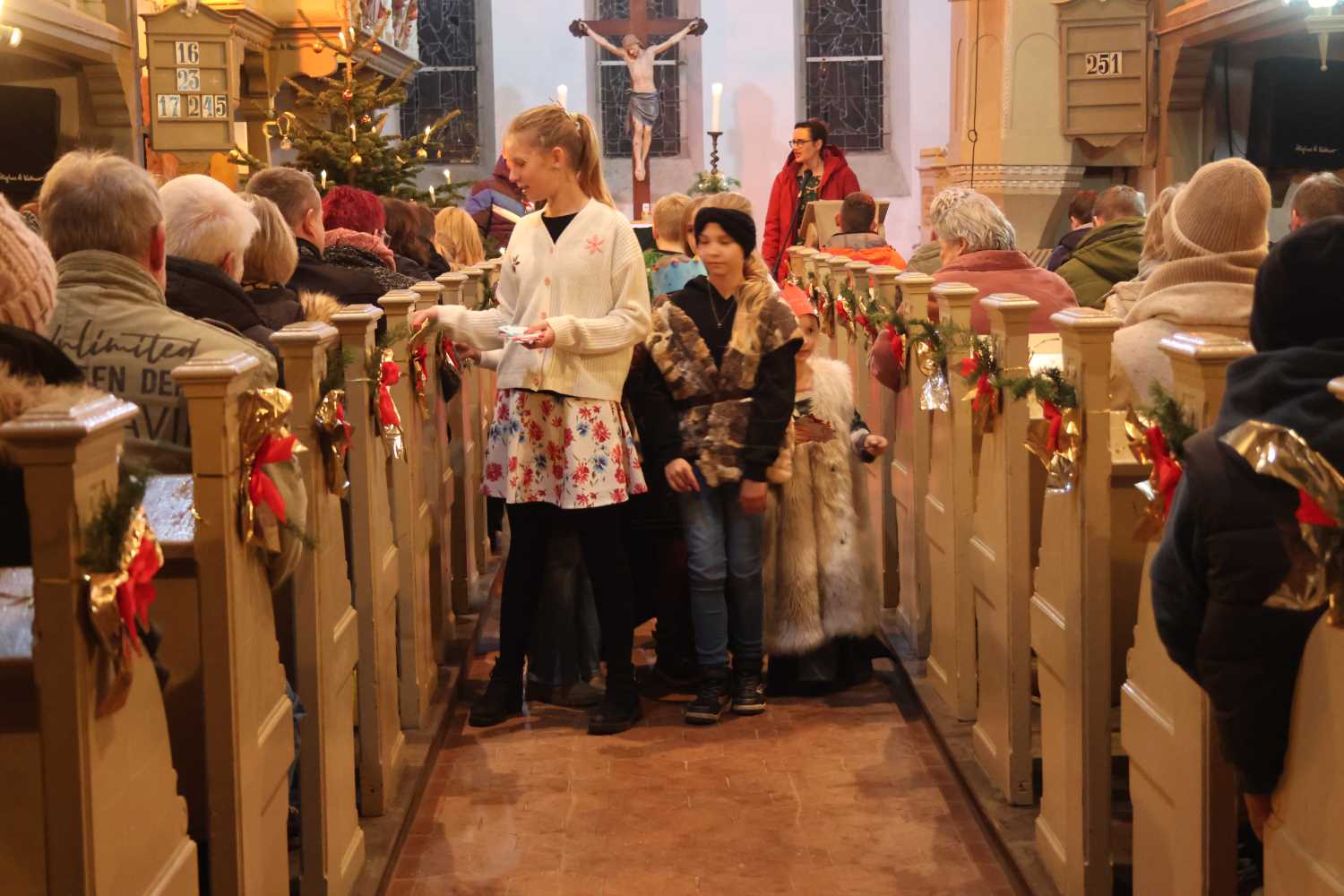 Zwischendurch wurden aber auch Weihnachtslieder gesungen. Noch kurz vorher hatte Florian Jakubowski die Melodien auf der Orgel gespielt und aufgenommen. So kam die Musik zwar aus der Konserve, aber zu hören war die Reetzer Orgel. Eltern, Großeltern und viele Gäste hatten ihre Freude an dem kurzweiligen Krippenspiel. Zum Schluss verteilten die Kinder kleine Weihnachtssterne mit Bibelsprüchen, passend zur Geburt Jesu. Eine wirklich schöne Einstimmung auf den Heiligen Abend – Danke, liebe Kinder!