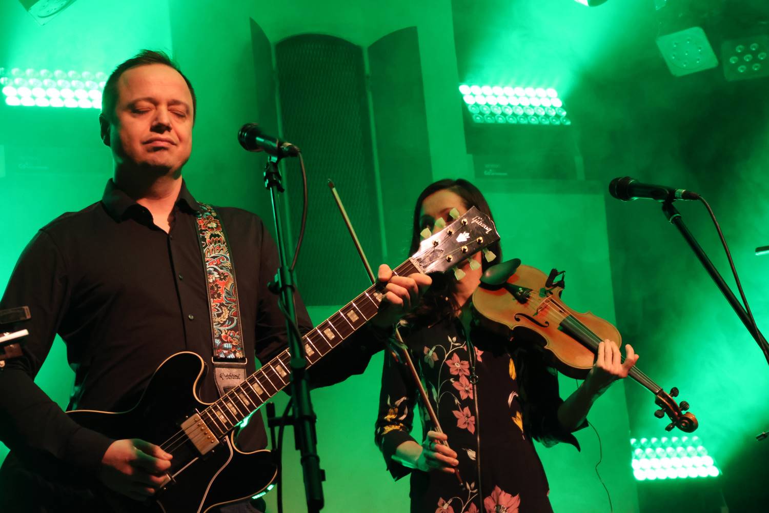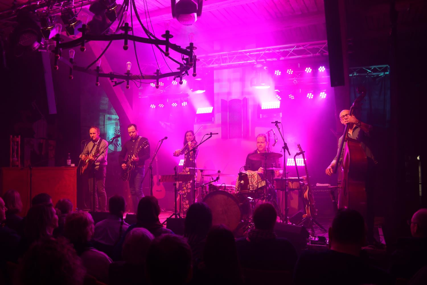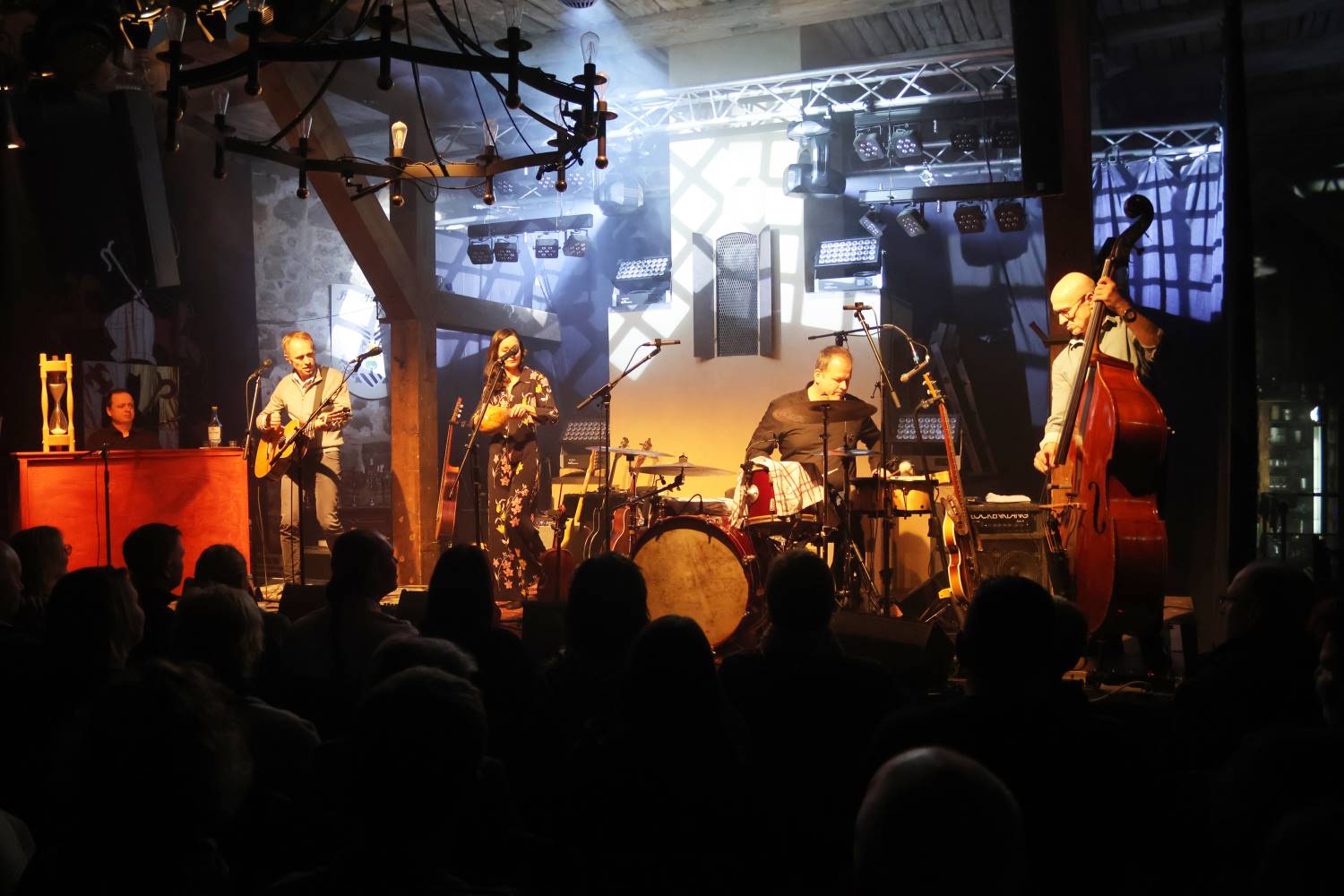 Auch für das Quintett ist es immer das erste Mal im Jahr, dass sie nach langer Zeit wieder gemeinsam spielen. „Da braucht es anfangs meist ein bisschen Anlauf“, schmunzelt Gitarrist Martin Weigel. Und so kommt es vor, dass auch Frontmann Norbert Leisegang mal seinen Text vergisst und die Lacher mit seiner Improvisation auf seiner Seite hat. Denn die Besetzung ist die zweite Besonderheit. In dieser Formation spielen die Musiker nur zu diesen Veranstaltungen. Neben Norbert Leisegang, aus dessen Feder viele der Songs stammen, sind Gabriele Kienast an der Violine, Martin Weigel an der Gitarre, Christian Schwechheimer am Schlagzeug und Hartmut Leisegang an Bass und Kontrabass mit dabei. Gerade durch den Bass entsteht ein ganz besonderer Sound.