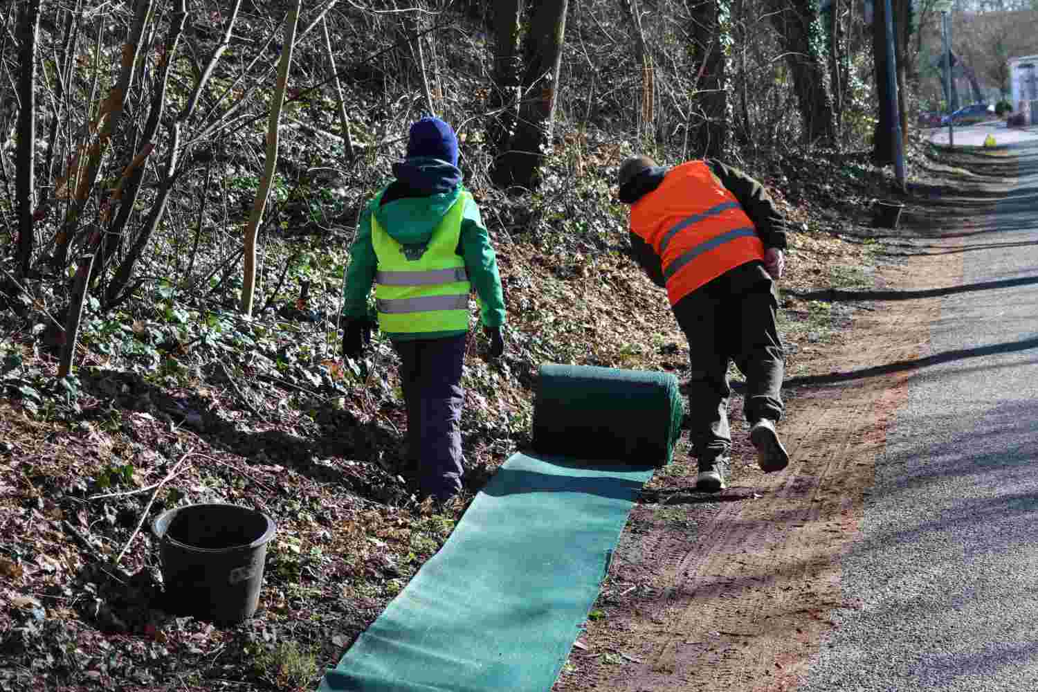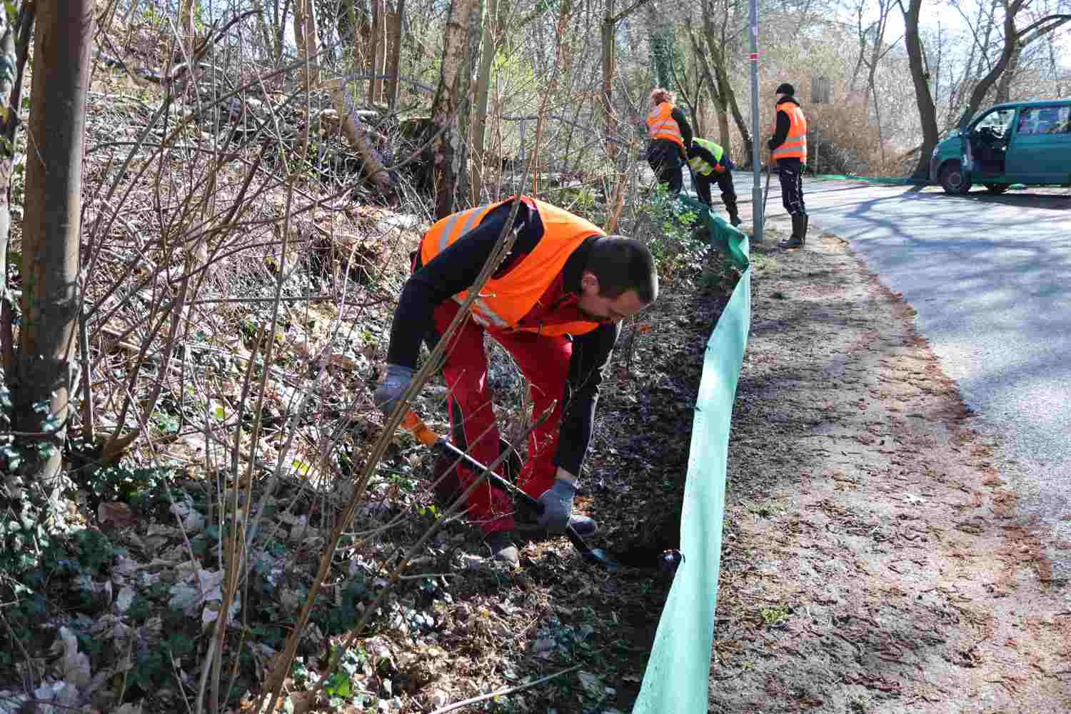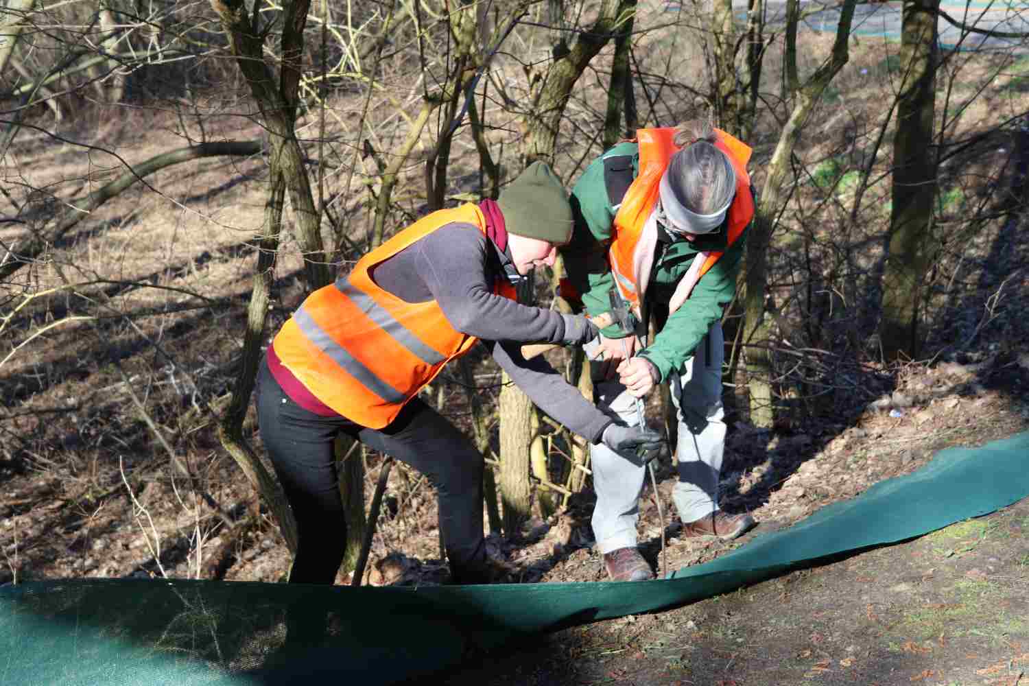 Viele fleißige Helfer beim Aufstellen der Krötenschutzzäune