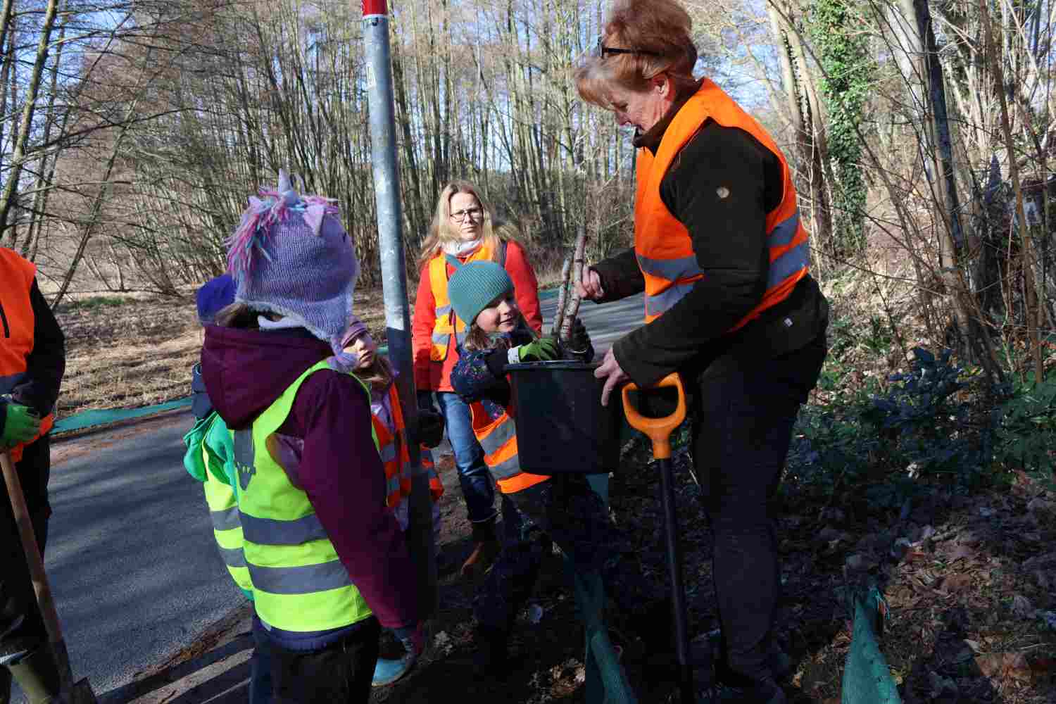 Besonders viele Familien mit Kindern waren am Sonntagmorgen gekommen. Und auch die Jüngsten packten kräftig mit an. Zum Anfang gab es eine kurze Einweisung und wertvolle Informationen zu den Gründen, warum diese Schutzzäune errichtet werden.