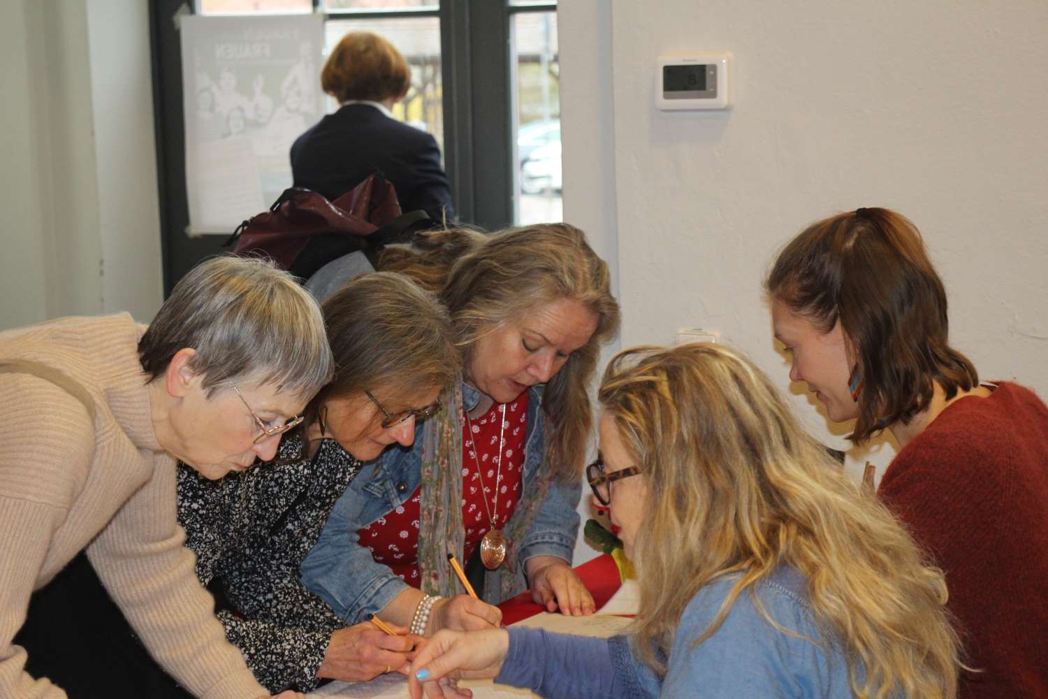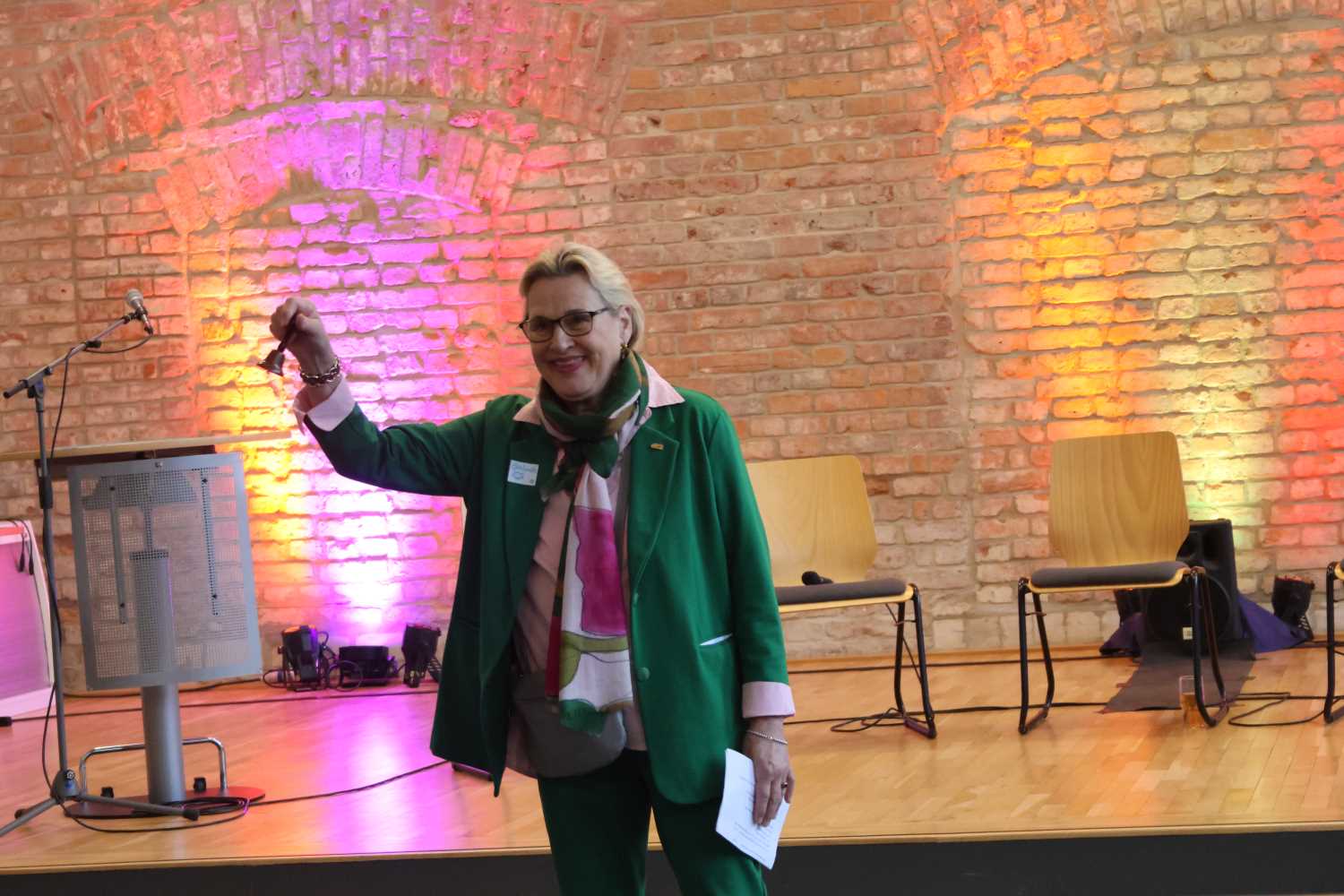 Zu Beginn erhielten alle Ankommenden ein Kärtchen von Nina Maria Stemberger für ein „Vernetzungsprojekt“. Frauen mit demselben Kärtchen sollten ihr Mittagessen gemeinsam einnehmen, um nicht allein zu sein und Gesprächspartner zu finden – aber natürlich völlig zwanglos, tauschen war erlaubt. Auch die Kennenlernzeremonie war besonders. In vier Ecken verteilt gingen alle als Antwort auf bestimmte Fragen auf die Mitte der Kunsthalle zu. So konnten die Frauen sehen, wer in der Region geboren ist, wer selbstständig und wer ehrenamtlich aktiv. Claudia Heinz eröffnete schließlich mit einem Song zum mitmachen.