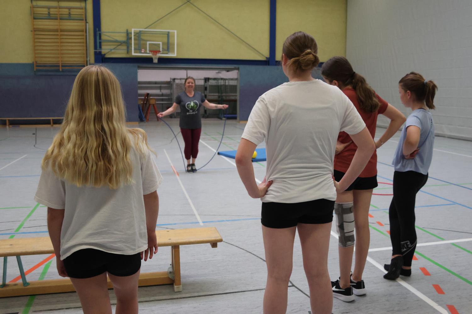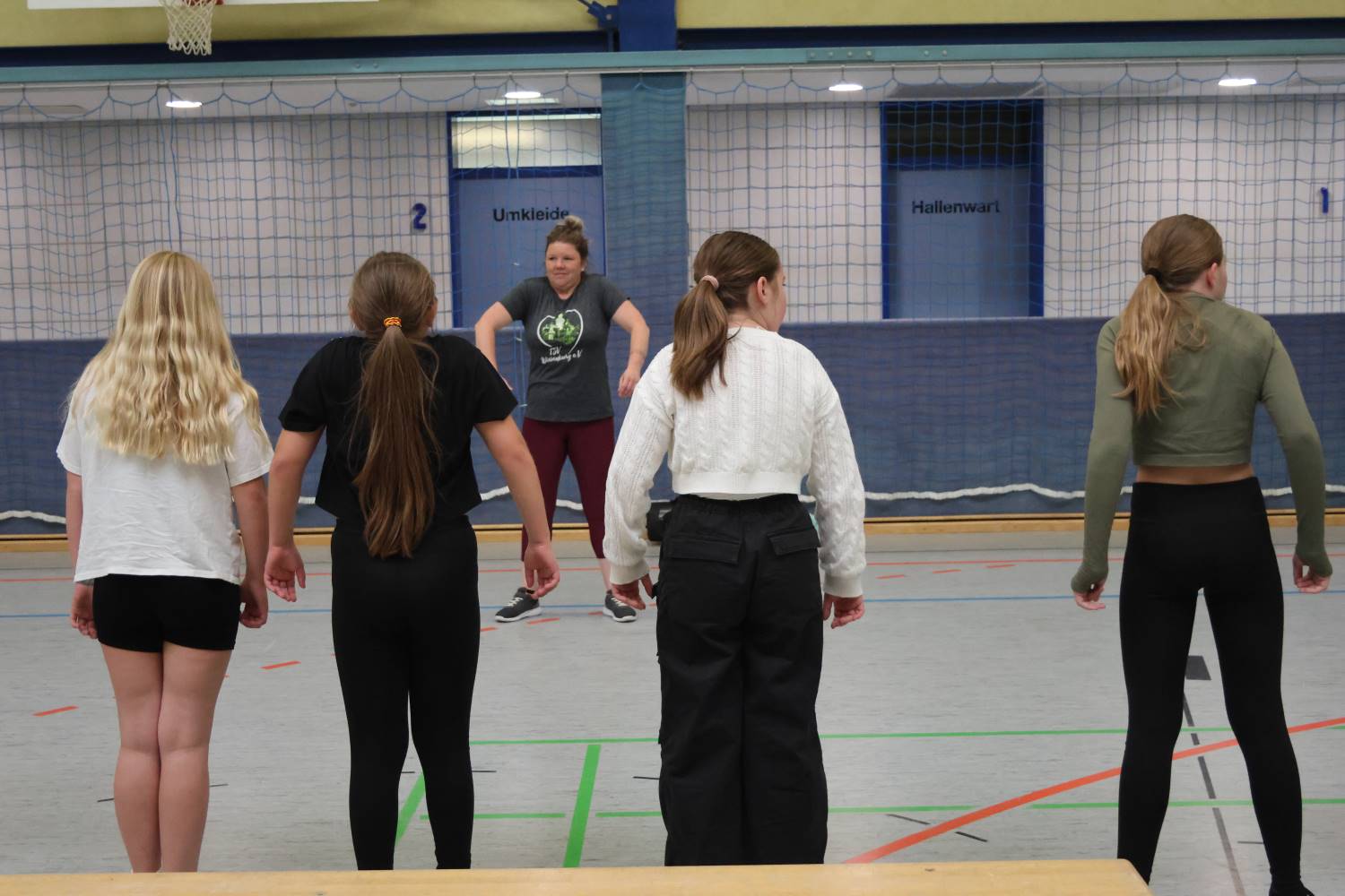 Jeden Montag treffen sich Mädchen zwischen 11 und 12 Jahren mit Übungsleiterin Nancy Fröhlich in der Sporthalle. In diesem Alter haben die Mädchen oft Probleme, mit den Jungs gemeinsam Sport zu machen. Die Pubertät beginnt, man achtet auf die Figur und möchte nicht gehänselt werden. So kam Nancy Fröhlich auf den Gedanken, eine Gruppe nur für Mädchen ins Leben zu rufen.