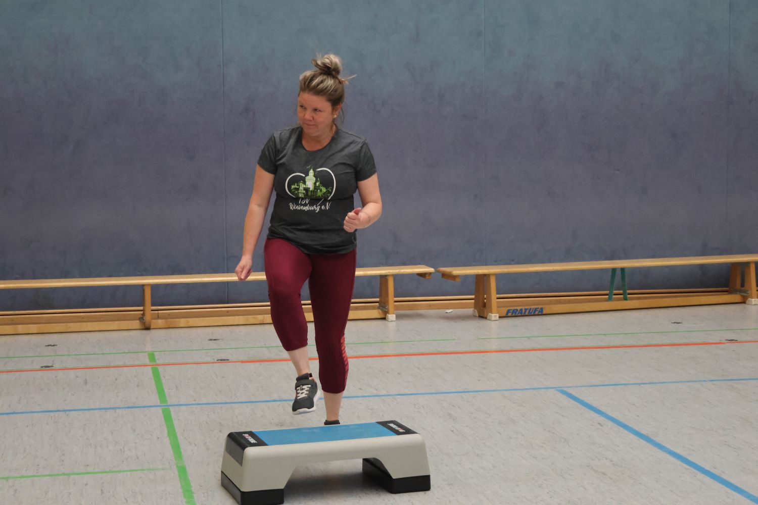 Die Sportgruppe der Frauen gibt es inzwischen schon seit 13 Jahren. Entstanden ist sie aus einer „Muttigruppe“. Die jungen Frauen wollten nach der Schwangerschaft gern wieder zu ihrer alten Figur zurückkehren. Mit der Zeit wurden es immer mehr, unabhängig von Schwangerschaften. Hier wird vorrangig Step Aerobic gemacht und spezielle Übungen für Bauch-Beine-Po. Aber auch hier ist nichts in Stein gemeißelt. Manchmal machen die Frauen Zirkeltraining, also ein Rundumwechsel verschiedener Übungen, aber auch Walking im Park ist sehr beliebt.