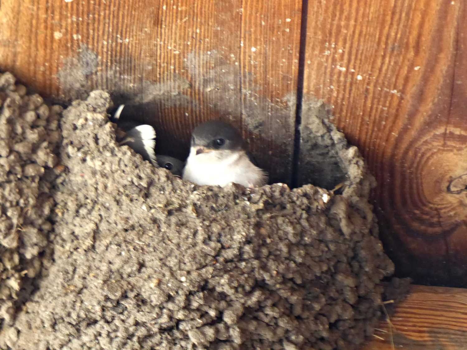 Jedoch zeigt sich,  dass die Nisthilfen für die Mehlschwalben einen Nachteil haben: Der Eingang bleibt durch das feste Material (Holzbeton) in seiner Größe beständig. Bei den Naturnestern wird mit dem Wachsen der Jungtiere das Einflug- und Futterloch vergrößert. Dadurch können sie besser von den Alttieren versorgt werden. Der Lösungsansatz liegt auf der Hand – Stephan Ernicke wird die Einfluglöcher in den Kunstnestern erweitern. Dann haben die Altvögel am Anfang der Brutsaison die Möglichkeit die Löcher selbst zu verkleinern. Der dafür verwendete Naturbaustoff kann raus brechen, sobald die Jungtiere größer werden. Eine wichtige Erkenntnis, die aus der gemeinsamen Beobachtung entsteht.