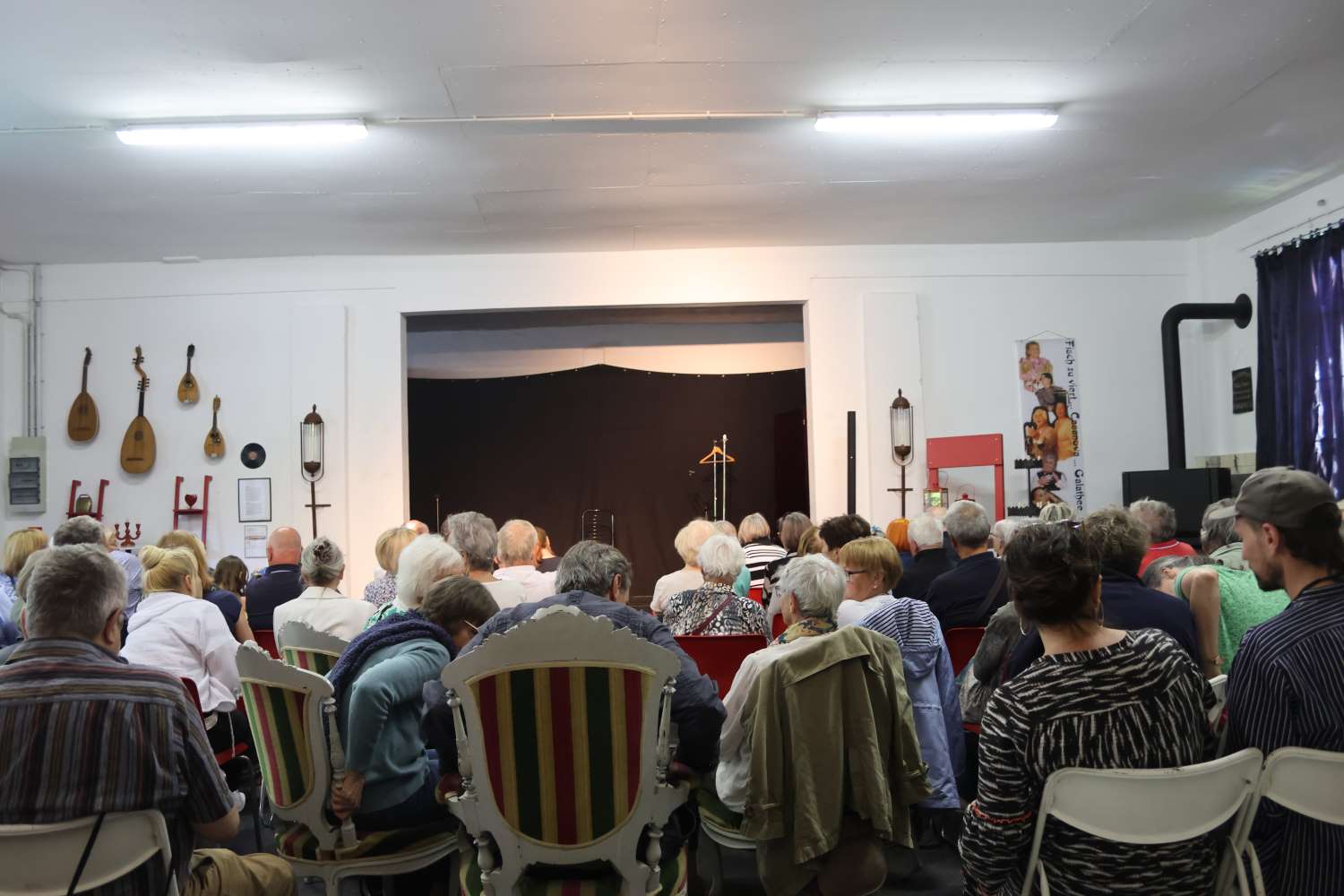 Wie kommt nun ein so bekannter Künstler nach Bad Belzig? So einfach hätte Gerlinde Kempendorff, erste Vorsitzende des Vereins KiM e.V. – Kultur im Mühlenhölzchen, sich nicht getraut, den gefeierten Künstler anzuschreiben. Aber ihr kam der Zufall zur Hilfe, wie sie in ihren Begrüßungsworten erzählte. Sie war mit ihrem Mann zu den Sommermusiktagen in Schmerwitz, wo auch ein Quartett mit einem Clown auftrat.