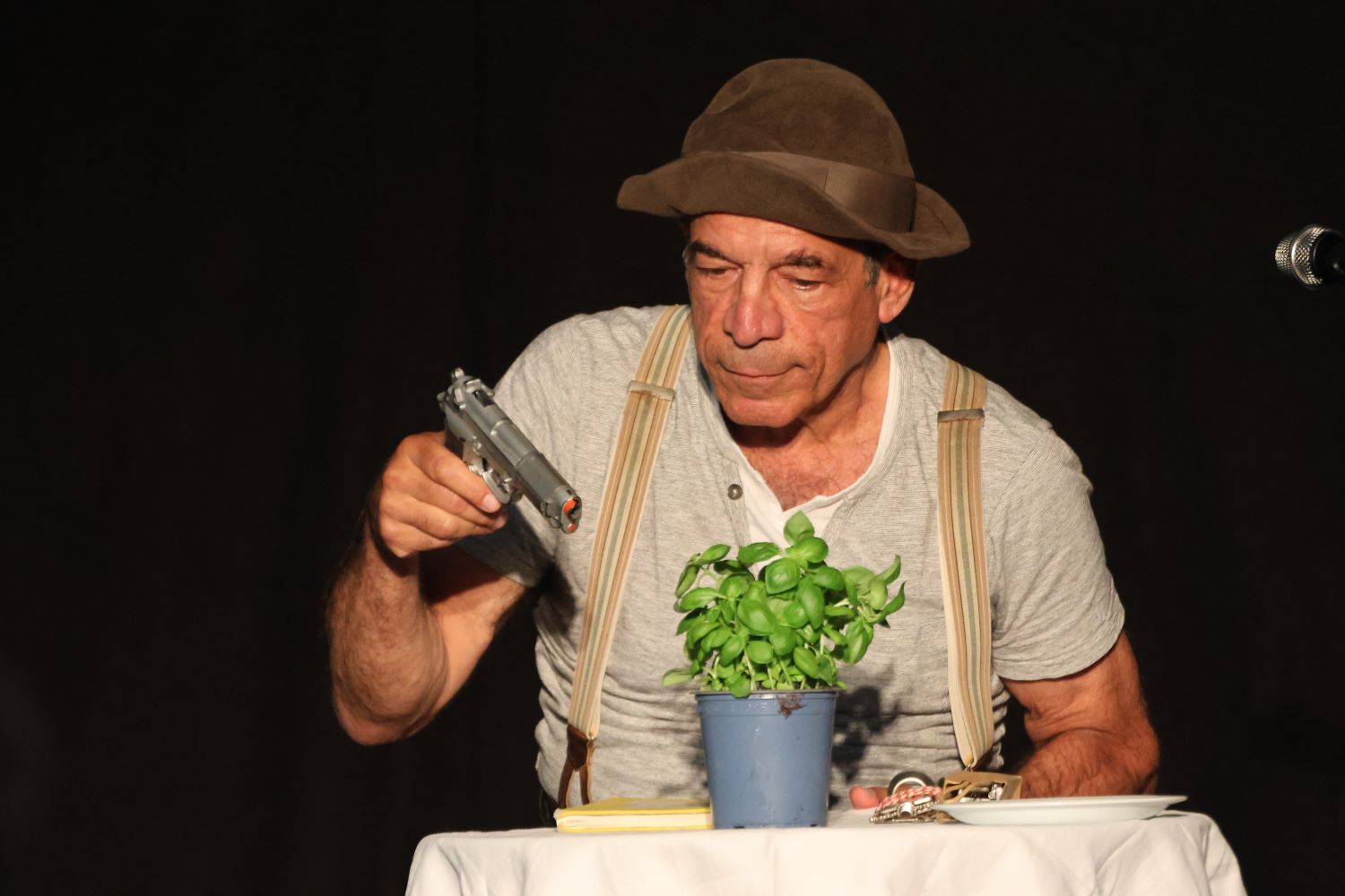 Noch mehr begeisterten das Publikum seine pantomimischen Darbietungen. Bei denen benötigte er anfangs nicht mehr als seine Hände. Später kamen ein Tisch, ein Glas, ein Korkenzieher oder auch ein Basilikumtöpfchen dazu. Dabei verstand es Peter Shub perfekt, auf die Reaktionen des Publikums einzugehen. Und das spielte gerne mit. Ein Renner war sein Kochbuch, aus dem er in einem Gemisch aus Deutsch und Englisch Rezepte vorlas. Dabei entstanden außergewöhnliche Wortkreationen. Das Publikum tobte, als sie aufgefordert wurden, etwas im Chor zusagen. Die Männer waren noch gut dran, sie riefen gemeinsam: Guten Abend Peter. Bei den Frauen hatte Peter Shub jedoch Pech, denn sie weigerten sich strikt zu rufen: Peter, mach mir ein Baby. Und auch Fotografen wurden bildlich auf die Schippe genommen, als Peter Shub ein Stativ aufbaute. Aus der Tasche zog er dann eine Minikamera, nicht viel größer als eine Streichholzschachtel. Das Stativ wurde für andere Späße entfremdet.
