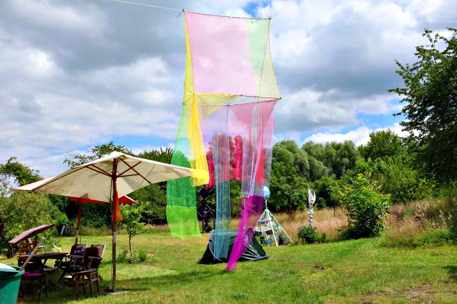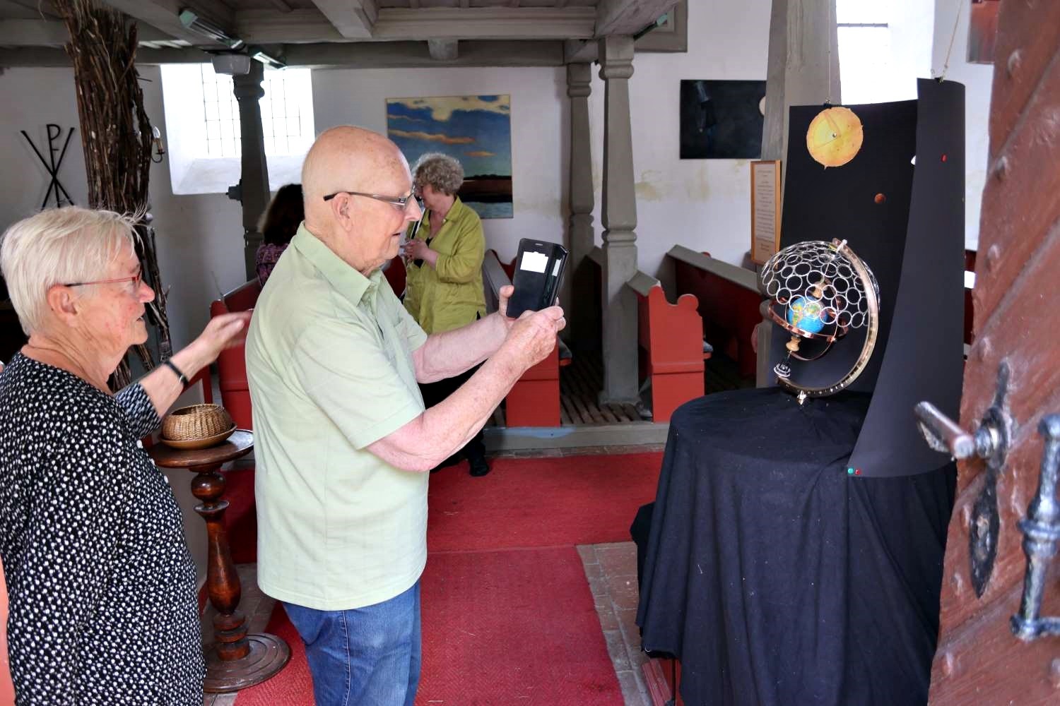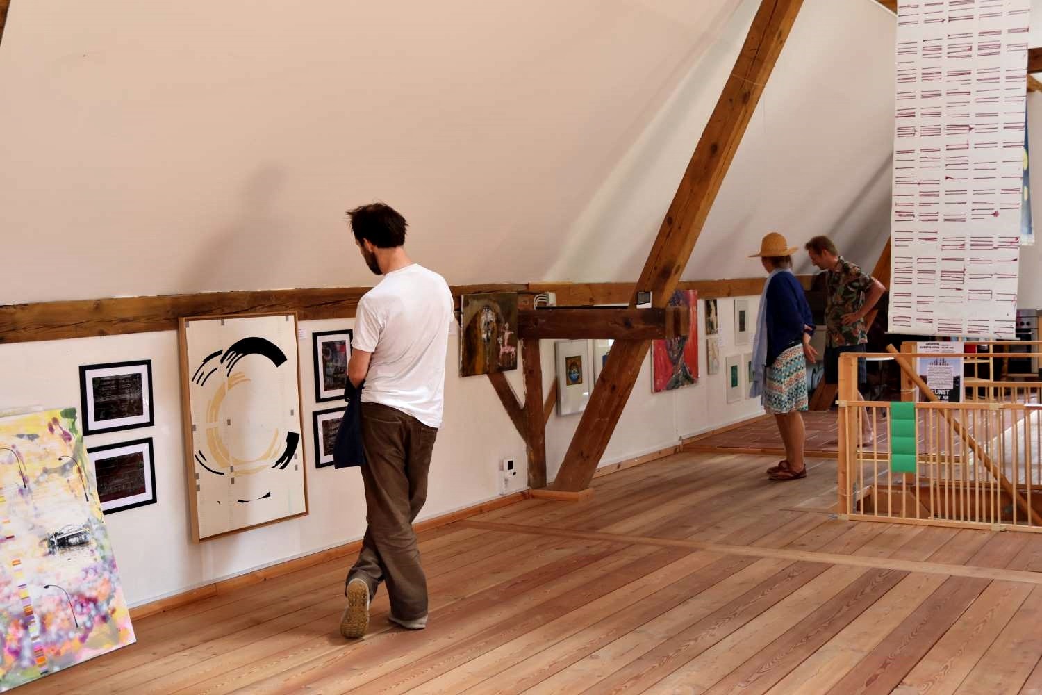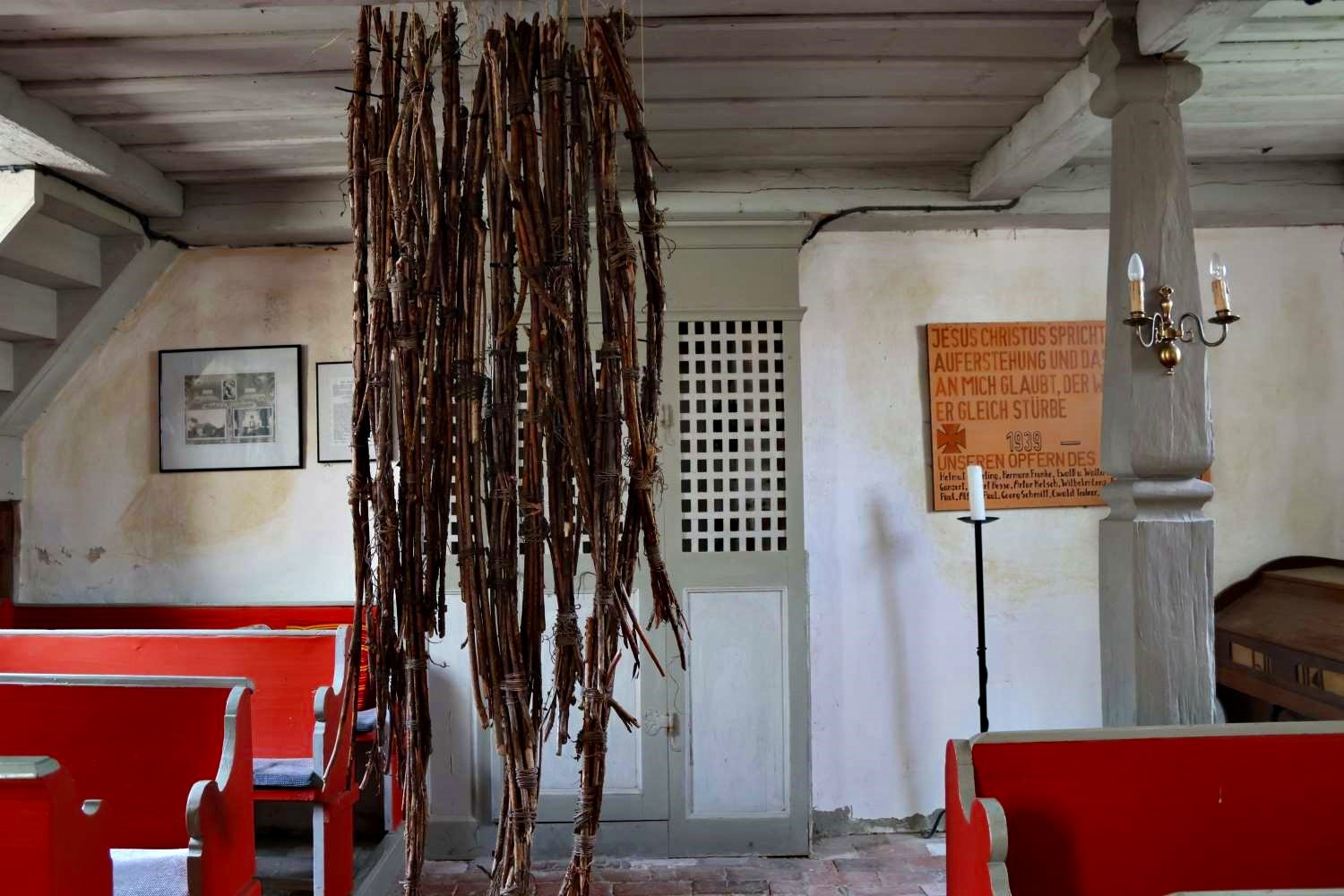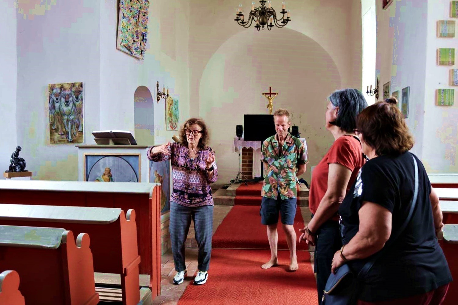 Bernadette Arnaud führte die Besucher durch die Kirche und erklärte die Kunstwerke. Sie selbst hatte eine Installation aus altem Holz beigesteuert. Diese soll eine Hommage an den großen Brand von Notré Dame vor einigen Jahren in ihrer Heimat sein. Auch Dietmar Paul hat sich wieder Gedanken gemacht. Sein Werk heißt Menschen-Erde-Universum. So sieht man in der Kirche zwar auch Porträts, aber auch viel Natur. Auch auf dem Hof des Wohnhauses von Bernadette Arnaud, waren viele Installationen zu sehen. Im Atelier unter dem Dach zeigten verschiedene Künstler ihre Werke. Es lohnt sich also, vorbei zu schauen. Das ist noch einmal am 29. und 30. Juni ab 14 Uhr möglich. Auch für das leibliche Wohl wird gesorgt.