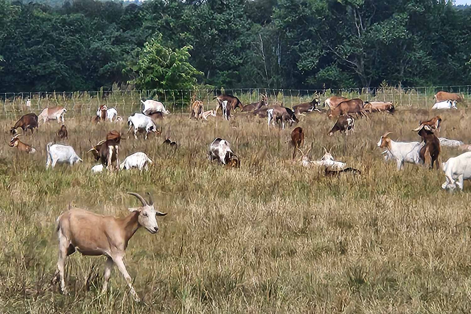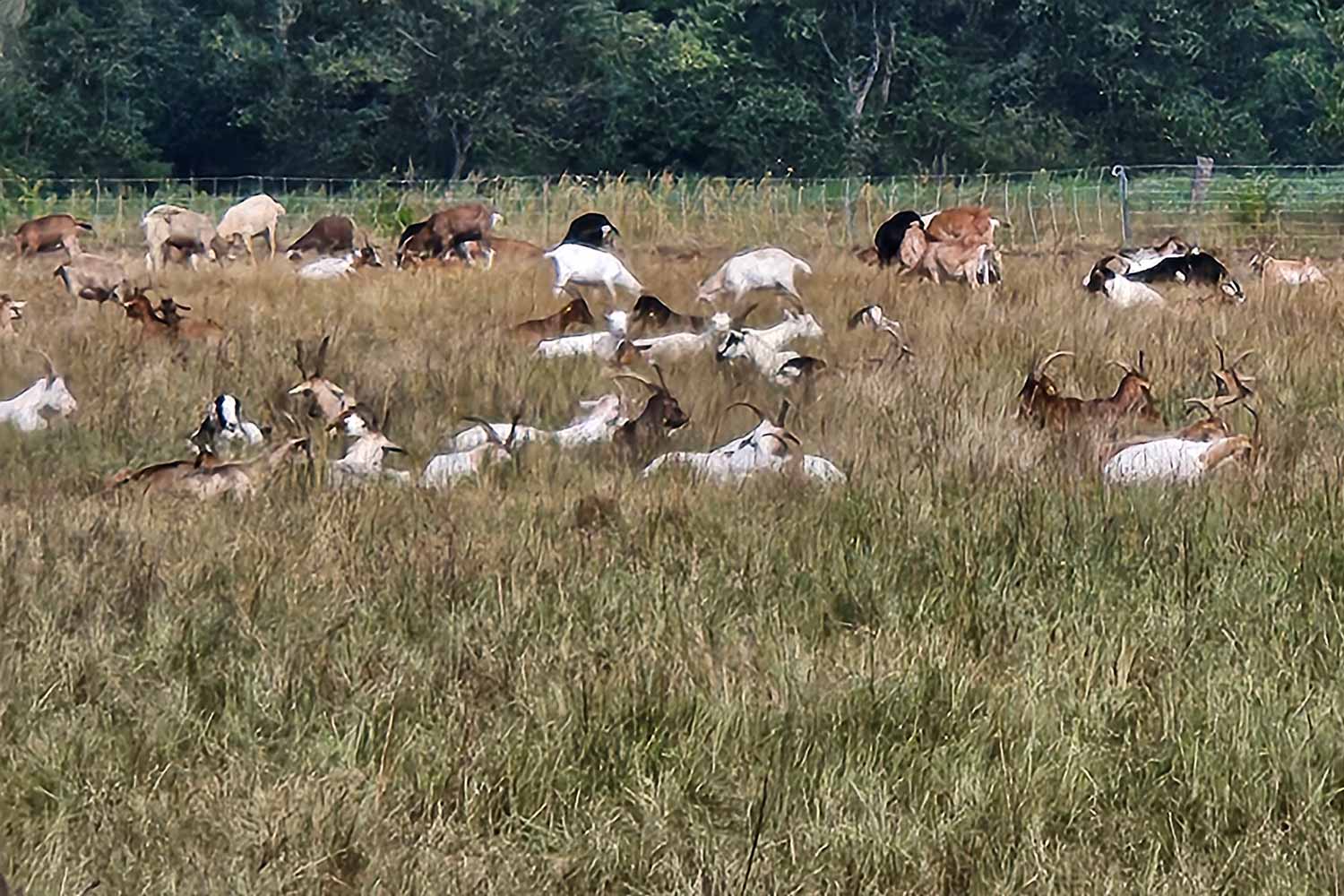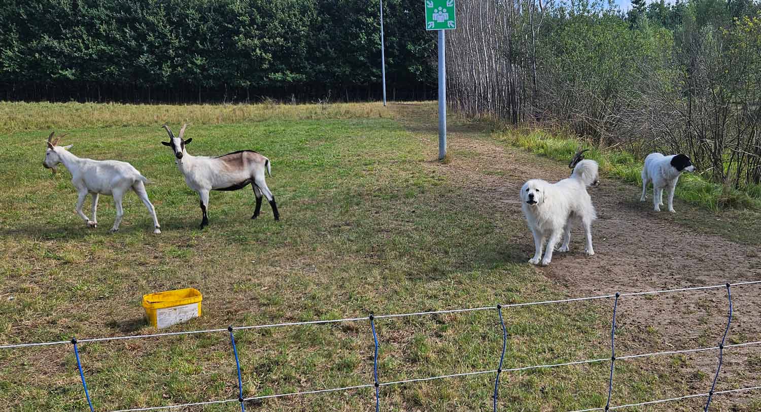 Bad Belzig: Ziegen als Rasenmäher; Herde samt Herdenschutzhund in Seedoche im Einsatz