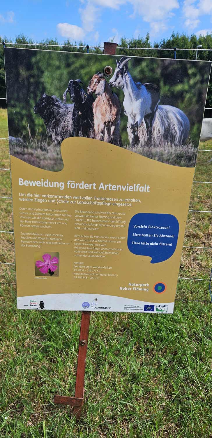 Die Beweidung wird durch die Stadt, die Naturparkverwaltung sowie durch das Projekt „LIFE Trockenrasen“ der Stiftung Naturschutz finanziert. Die Tiere von Max Hafemann und Josephine Rauhut laufen nämlich von Fläche zu Fläche – auf Radwegen, über Landstraßen, durch Dörfer und Städte. Bis Ende Mai gehörte die Brautrummel bei Grubo zu ihrem Revier, danach die Schweinrummel.