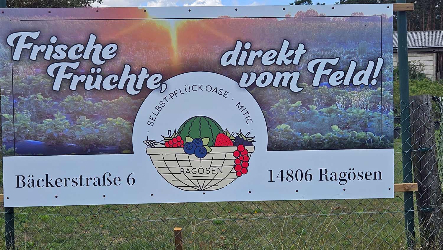 Ragösen. An der Kreuzung der B102 und der Feldstraße in Ragösen ist ein großes Banner zu sehen, „Frische Früchte direkt vom Feld“ ist darauf zu lesen, ein Pfeil führt in Richtung des Spargelhofs, der ab Juni zu einer Beeren-Oase der Familie Mitic wird.