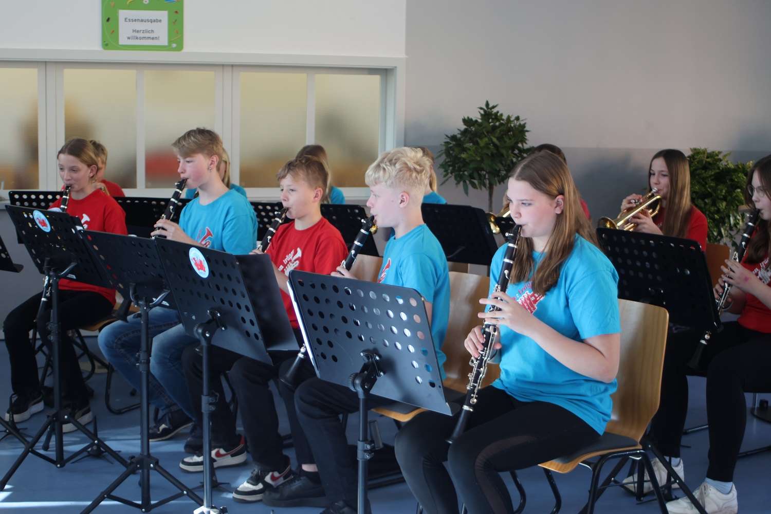Viele waren der Einladung gefolgt und nutzen die Gelegenheit, um Erinnerungen auszutauschen. Die Bläserklassen hatten extra für diesen Tag ein Stück aus „Herr der Ringe“ eingeübt und bekamen für ihren Auftritt viel Beifall.