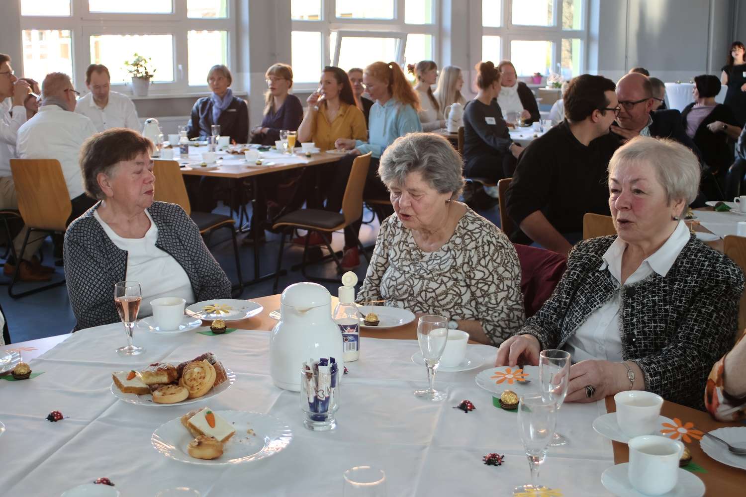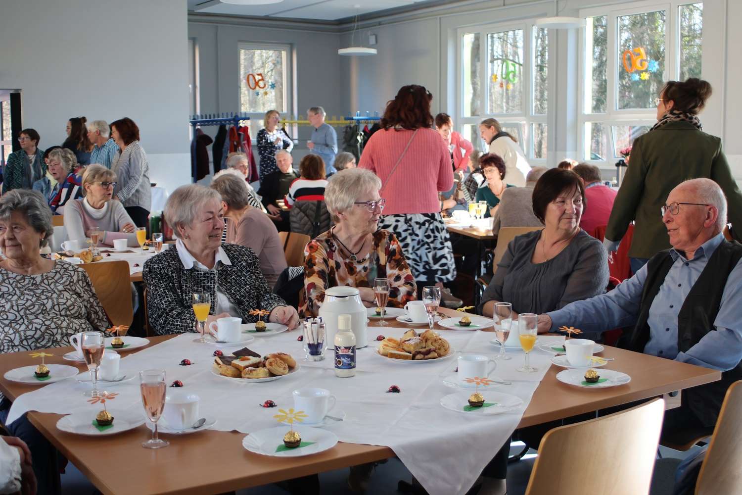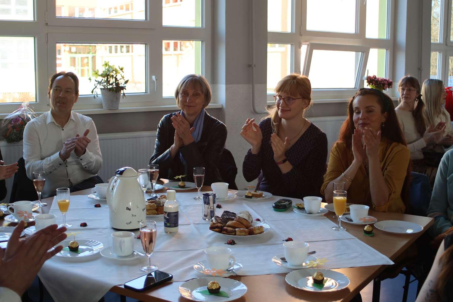 Viele dieser Ereignisse wurden in einer Chronik und auch bildlich festgehalten. Dazu gab es im Pavillon eine Ausstellung, organisiert und zusammengestellt unter Leitung von Ines Block. Da herrschte natürlich großes Gedränge und so dieser oder jener hat sich vielleicht auf den alten Fotos wiedererkannt. Nicht zuletzt bedankte sich Susan Lodge bei ihrem Kollegium für die tolle Organisation dieses Tages und besonders bei Beate Dikall, die für den leckeren Kuchen gesorgt hatte.