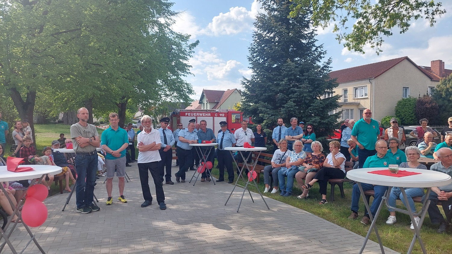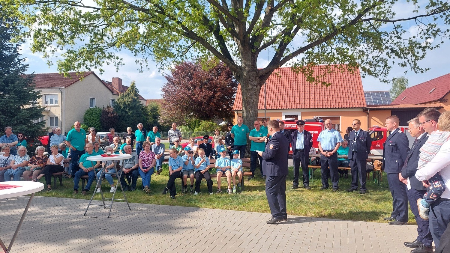 Das wurde natürlich gebührend gefeiert mit Gästen der Landesregierung, des Landkreises, der Gemeinde und vielen Dorfbewohnern. Im Sommer 2022 gab es den ersten Spatenstich, Ende 2024 fand die Bauabnahme statt. Nachdem im Frühjahr das Inventar wie Schränke und anderes geliefert wurden, ist das Gebäude nun komplett. Sehr zur Freude der Feuerwehrleute, mussten sie sich doch bis dahin mit etwa 40 m² begnügen – Umkleiden gab es nicht. Das gesamte Vorhaben hat ca. 500.000 Mio. Euro gekostet. Die Gemeinde konnte eine Förderung von 58 Prozent einwerben. Eine große Hilfe beim Bau waren die vielen Stunden, welche die Feuerwehrkameraden in Eigenleistung erbrachten.