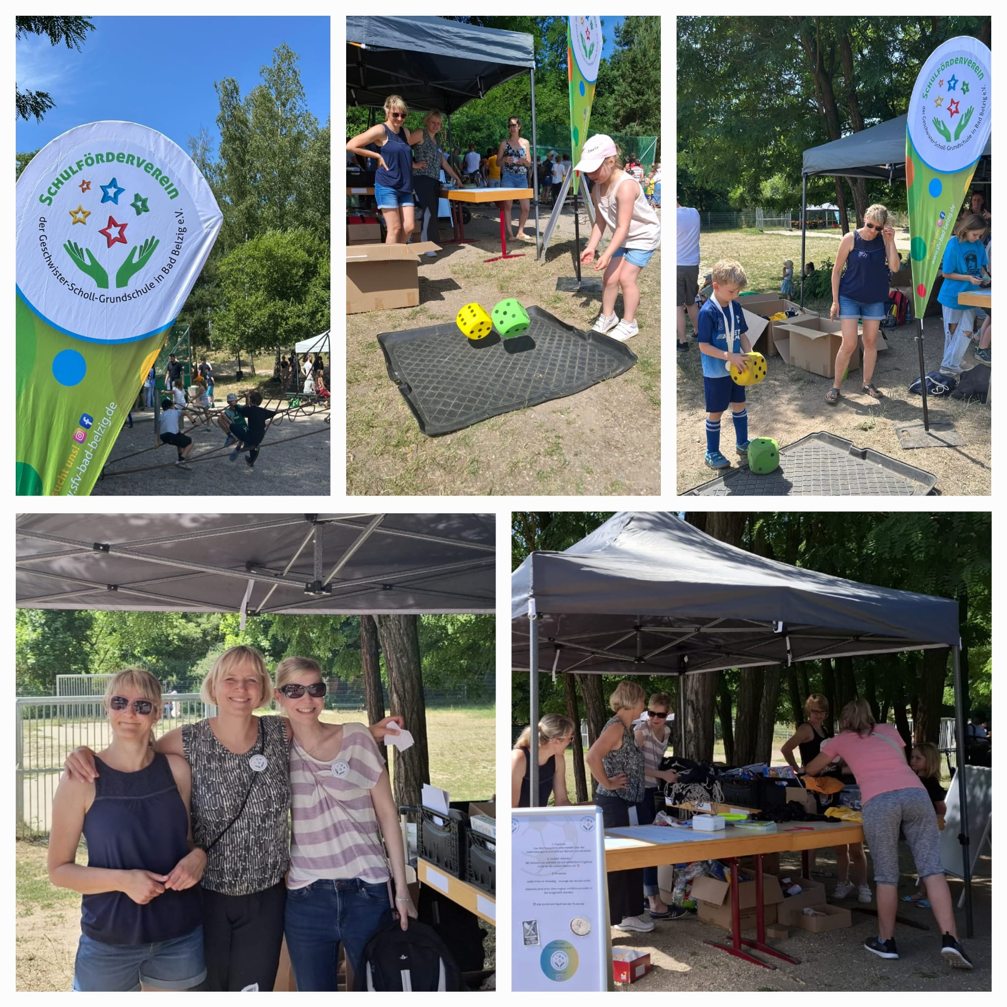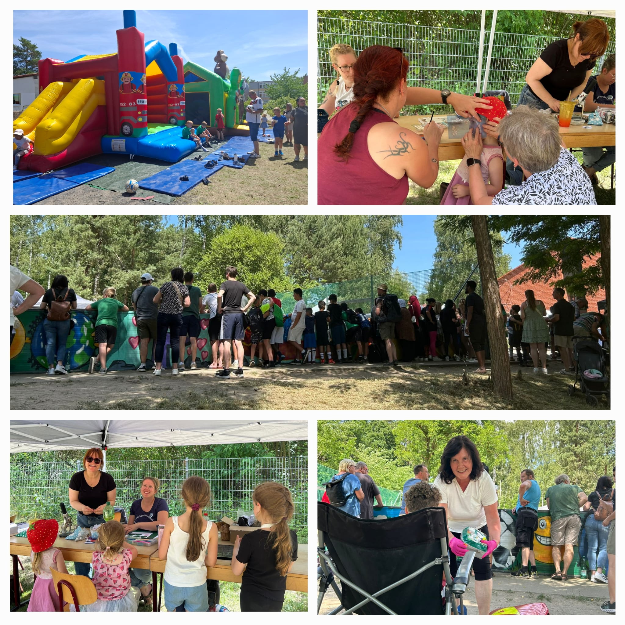 Neben dem sportlichen Wettbewerb wurde auch ein buntes Rahmenprogramm geboten, das für strahlende Kinderaugen und zufriedene Familien sorgte. Das Team des Hortes organisierte Kinderschminken und schnell waren viele Kunstwerke auf dem Platz zu sehen, die stolz von den Kindern präsentiert wurden. Der Belziger Jugendclub JuBel bastelte mit den Kindern kreative Buttons. Die Jugendfeuerwehr Kuhlowitz sorgte mit zwei Hüpfburgen für zusätzlichen Bewegungsspaß. Gleichzeitig war für das leibliche Wohl bestens gesorgt: Eltern verkauften Bratwürste, Brezeln, Kuchen, Getränke, Popcorn, Eis, Slush und Zuckerwatte – unterstützt durch zahlreiche Spenden von lokalen Betrieben.