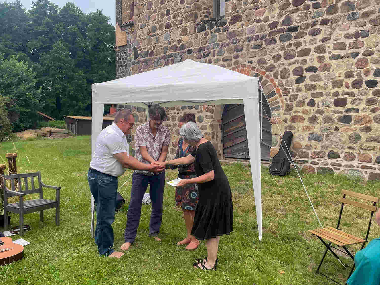Das Fest markierte den Abschluss der Übergabe vom Alten zum neuen Vorstand. Dorothee Bornath ist ausgezogen, die Glas-Werkstatt von Iris Seraphin Bergner ist geräumt ,und die Gestaltung des Festes war ein schönes Zusammenwirken von altem und neuem Vorstand mit vielen Freunden.