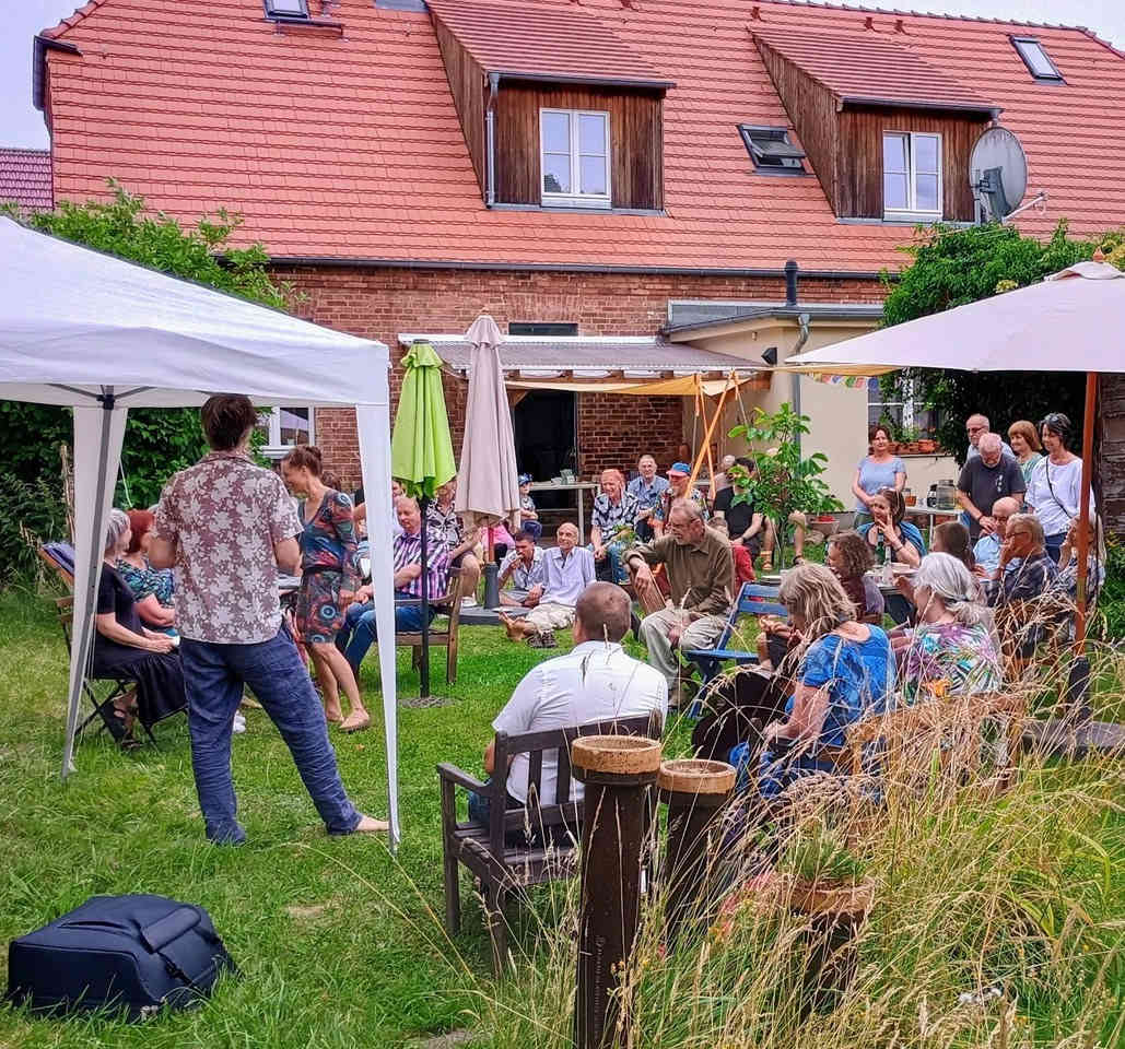 Im Garten der Alten Schule genossen 80 bis 100 Gäste einen angenehmen, geselligen, fröhlichen Sommernachmittag und Abend bei schönstem Wetter. Alte und neue Freunde kamen  zusammen, viele Gespräche wurden geführ. Für Unterhaltung sorgte Live Musik von und mit Hans Flake, Barbara Stützel und Zisula Cordaches. Kaffee, Kuchen, Salate und Bratwurst und alkoholfreien Getränke machten den Nachmittag komplett.