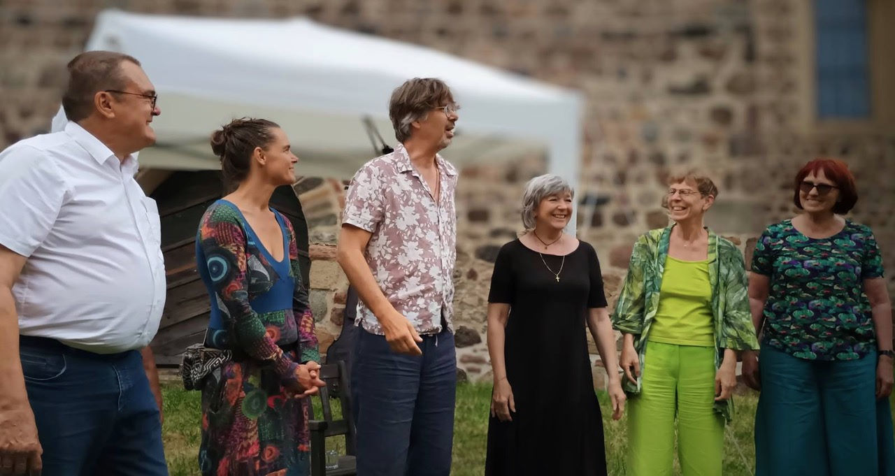 Eine Zeitlang war Iris Seraphin nicht im Vorstand, was ihrer künstlerischen Arbeit mit Glas zugutekam. Immer viel besucht, waren die Wiesenburger Glastage, die sie gemeinsam mit Kolleginnen und Kollegen ins Leben gerufen hat. Auch wegen der Unterstützung durch die Nachbarschaft in der Hermann Boßdorf Straße übernahm sie in 2020 wieder den Vorstand. Iris Seraphin Bergner wird jetzt, nachdem ihre Vision vollbracht ist, zu neuen Ufern aufbrechen und in die Oberlausitz ziehen. Barbara Klembt unterstützte Stephan Strehler mit einem Rückblick auf die Vorgeschichte und wies auf Iris‘ Engagement in der Kunstperle und für den Kunstwanderweg  hin.