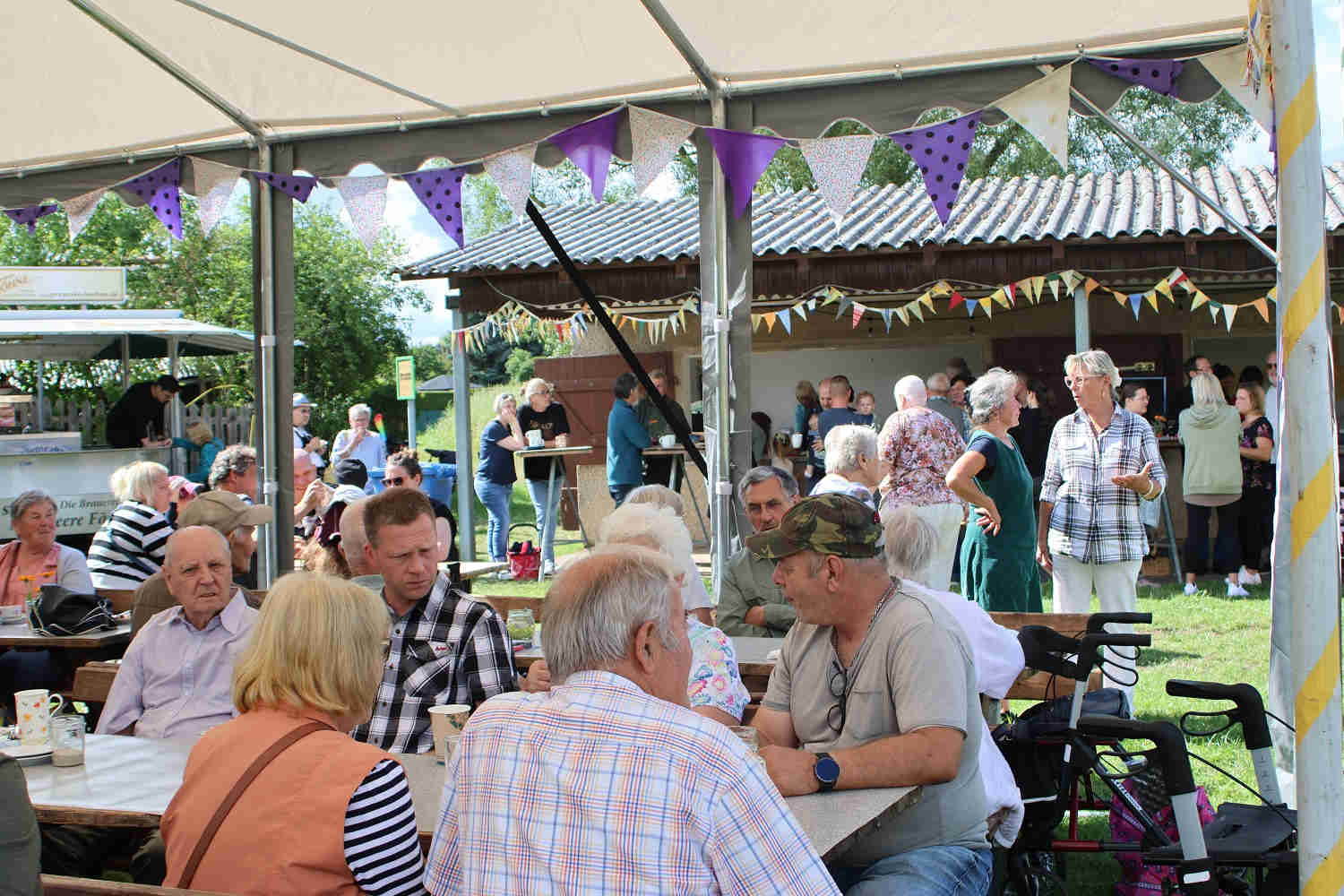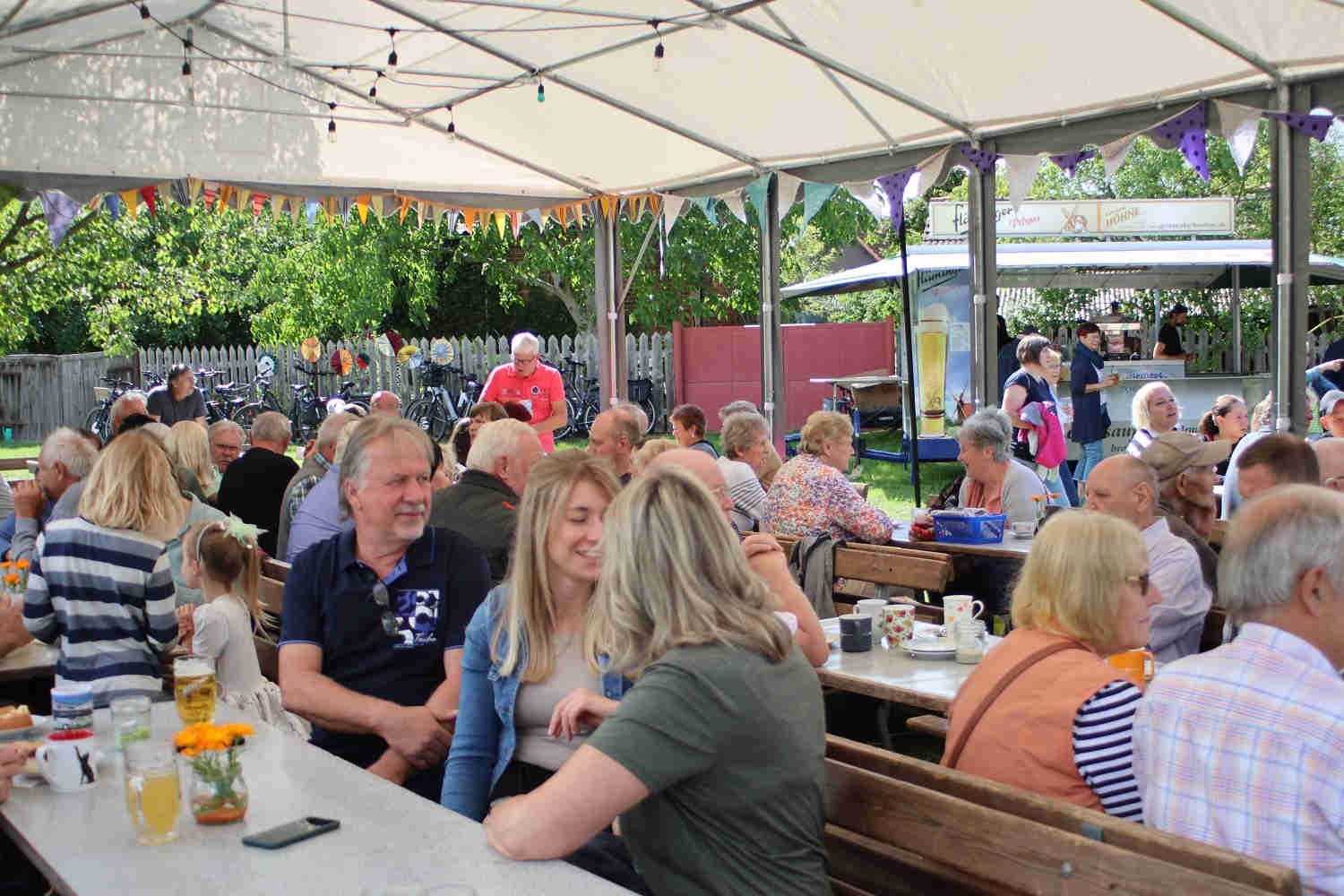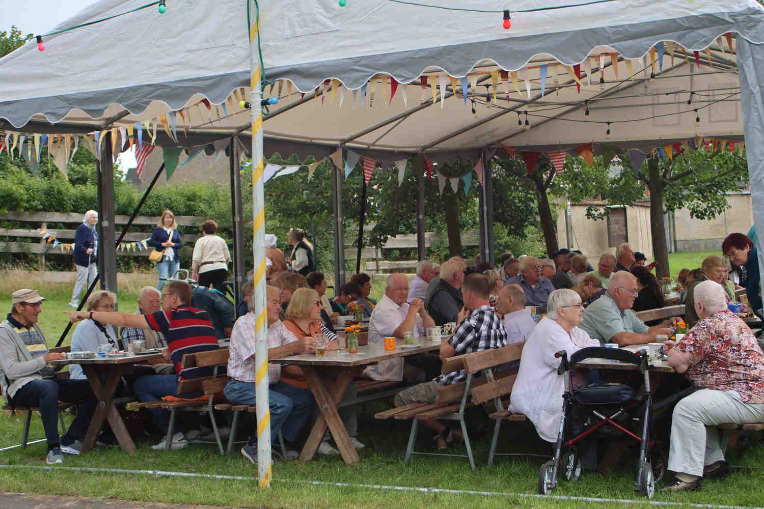 Das Zelt in Jeserig war voll besetzt, es mussten sogar zusätzlich Sitzbänke und Tische aufgestellt werden. Alle genossen den selbst gebackenen Kuchen. Es gab Eis und natürlich Leckeres vom Grill. Für den Kinderspaß war bestens gesorgt, und die Lose für die kleine Tombola gingen weg wie warme Semmeln. Der Abend Klang mit Musik und Lichtern aus. Und der See trug zu einer tollen Abendstimmung bei.