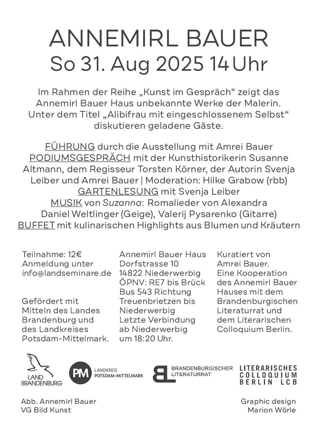 Veranstaltungsort: Annemirl-Bauer-Haus, Dorfstraße 10, 14822 Niederwerbig