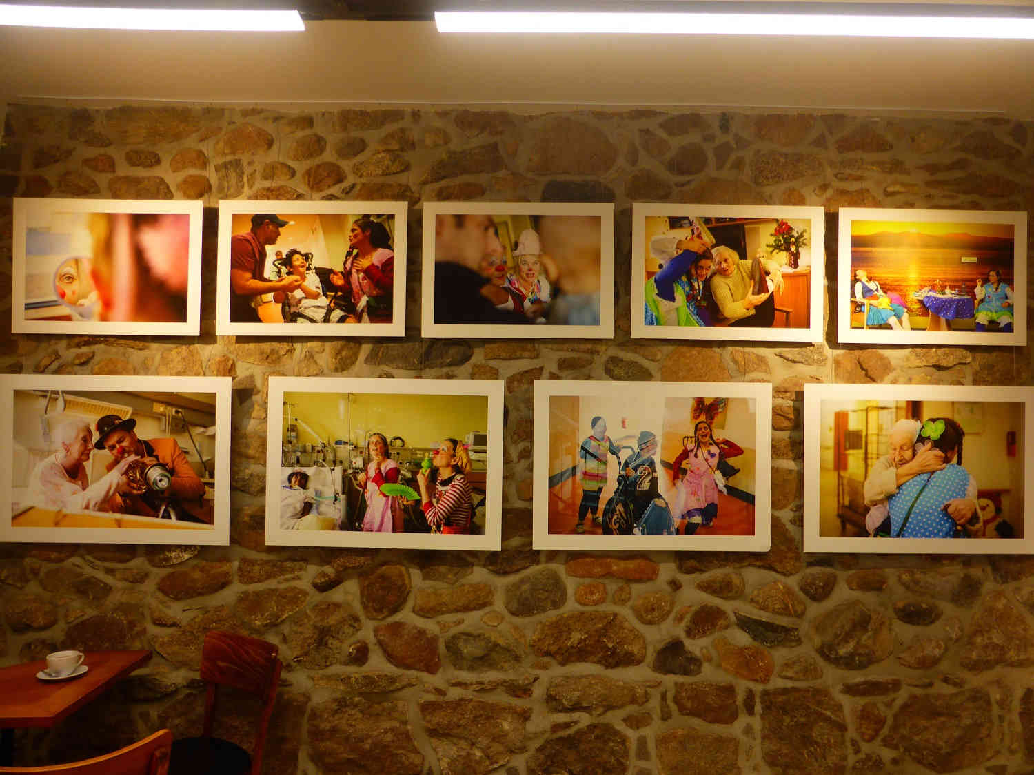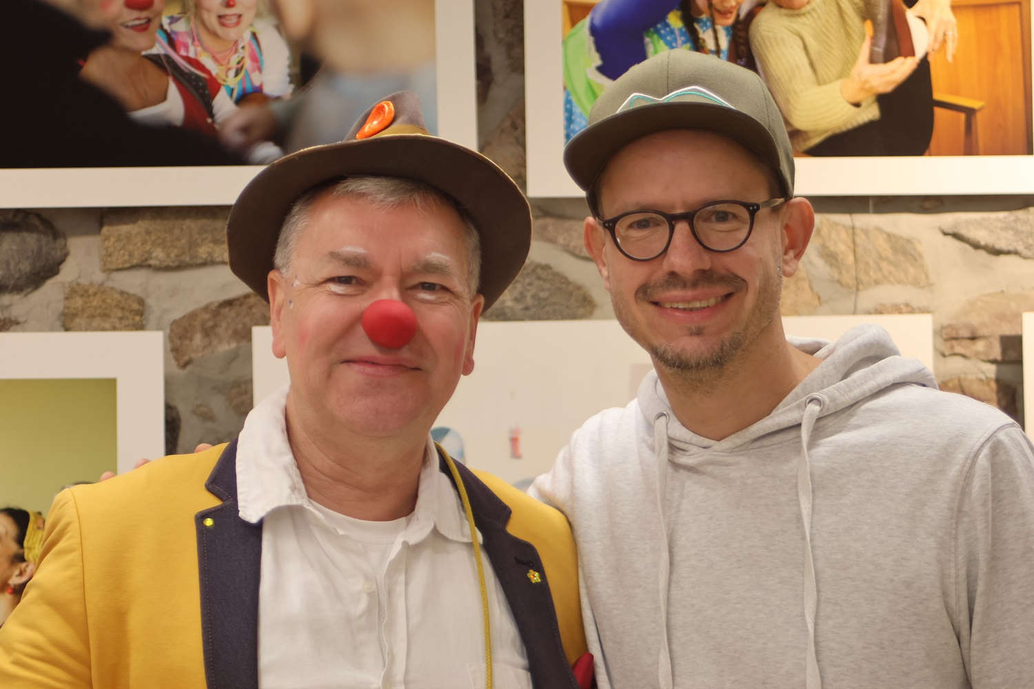 Im Landmarkt gab es ebenfalls Fotos zu sehen. Sie sind Ergebnis eines Projektes von Journalist und Fotograf Sebastian Höhn. Er begleitete über ein Jahr lang die Potsdamer Klinikclowns bei ihren Besuchen in Krankenhäusern, Rehas und auf Palliativstationen. Die Klinikclowns holen dabei für einen Moment die Patienten aus dem Klinikalltag heraus. „Wir gehen dabei völlig zielfrei in die Zimmer, ohne großes Equipment und nutzen das, was vorhanden ist“, erzählt Andreas Böhlke alias Clown Tute Caruso. Er ist Hornist im Konzerthaus Berlin und stieß durch einen Fernsehbericht auf die Klinikclowns. Sofort war für ihn klar: Das will ich auch machen. Zumal er auch in seinem Beruf viel Juniorarbeit gemacht hat. Er bezeichnet die Klinikclowns nicht als Bühnenclowns, sondern als Kontaktclowns. Sie sind nicht so stark geschminkt, wie die Clowns aus Zirkus und auf anderen Bühnen. Auch in Bad Belzig brachte er im Landmarkt vielen Kindern Spaß und Freude. Und auch die Fotos von Sebastian Höhn sind sehr bewegend. Für die Ausstellung hat er aus mehreren tausend Fotos ausgewählt.