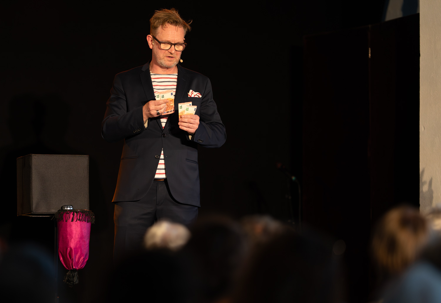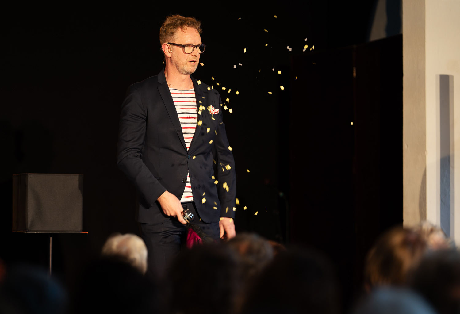 Im dritten Akt wird wurde gezaubert. Martin Sierp begab sich in den „Bad Belziger Hexenkessel“. Sierp ist eigentlich kein Name, sondern ein Geräusch, das sagte er selbst. Und rückwärts gelesen ergibt er tatsächlich etwas Sinnvolles. Für Sierp heißt Gastfreundlichkeit in Berlin, dass der Gast freundlich sein muss. Deshalb lebt er jetzt in Potsdam.