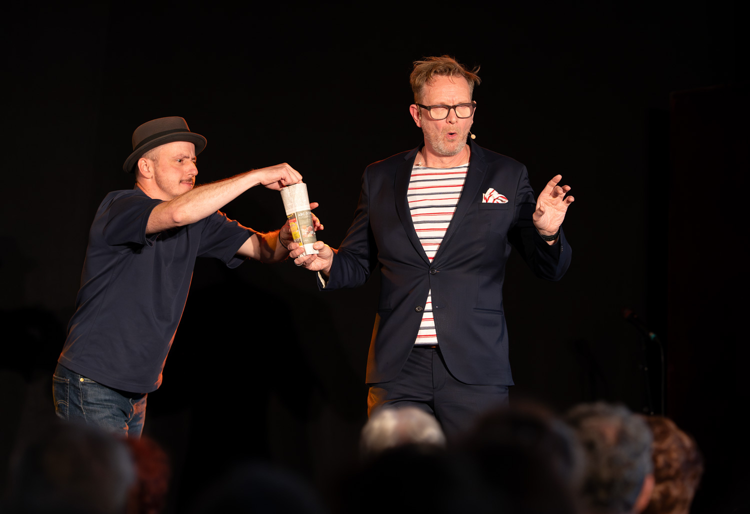 In Bad Belzig war Zauberer Martin Sierp so freundlich, einen seiner Tricks dem Publikum zu verrraten. Er wiederholte ihn in Zeitlupe, auch sprachlich, und so sah man noch einmal Stefan Danziger als heimlichen Zaubergehilfen. In Sierps interaktiven Show musste das Publikum mitmachen, und es machte – nach zwei Absagen – tatsächlich mit. Sierp ließ sich von dem Ehepaar Maria und Stefan aus Beelitz erzählen, wie sie sich kennenlernten. Und spricht es dann als Bauchredner nach, wobei Maria und Stefan lediglich den Mund mitbewegen müssen. Es ist zum Brüllen komisch – und entsprechend reagieren die beiden auf der Bühne und auch das Publikum. Ein Wunder, dass diese Nummer nicht zum Gewinn der Bachstelze reichte. Das Mitmachpaar bekommt als Dank zwei Freikarten zu einer Veranstaltung von Martin Sierp ihrer Wahl.