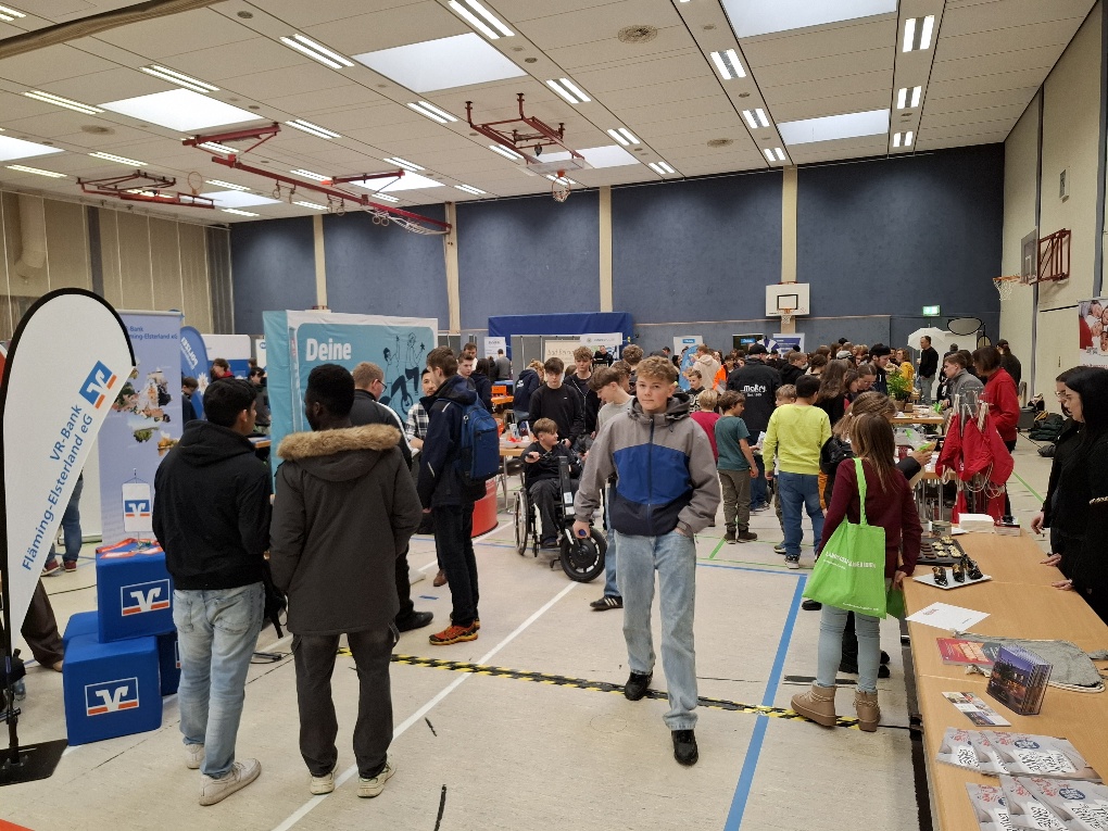 Bereits am Vormittag füllte sich die Halle sichtbar. Die im Vorfeld abgestimmten Zeitfenster für Schulklassen aus Bad Belzig, Brück, Beelitz, Kloster Lehnin und Brandenburg an der Havel sorgten für einen reibungslosen Ablauf und ermöglichten intensive Gespräche an den Ständen. Lehrkräfte lobten die gute Planbarkeit und die Möglichkeit, den Jugendlichen ausreichend Raum für Fragen und Austausch zu geben.
