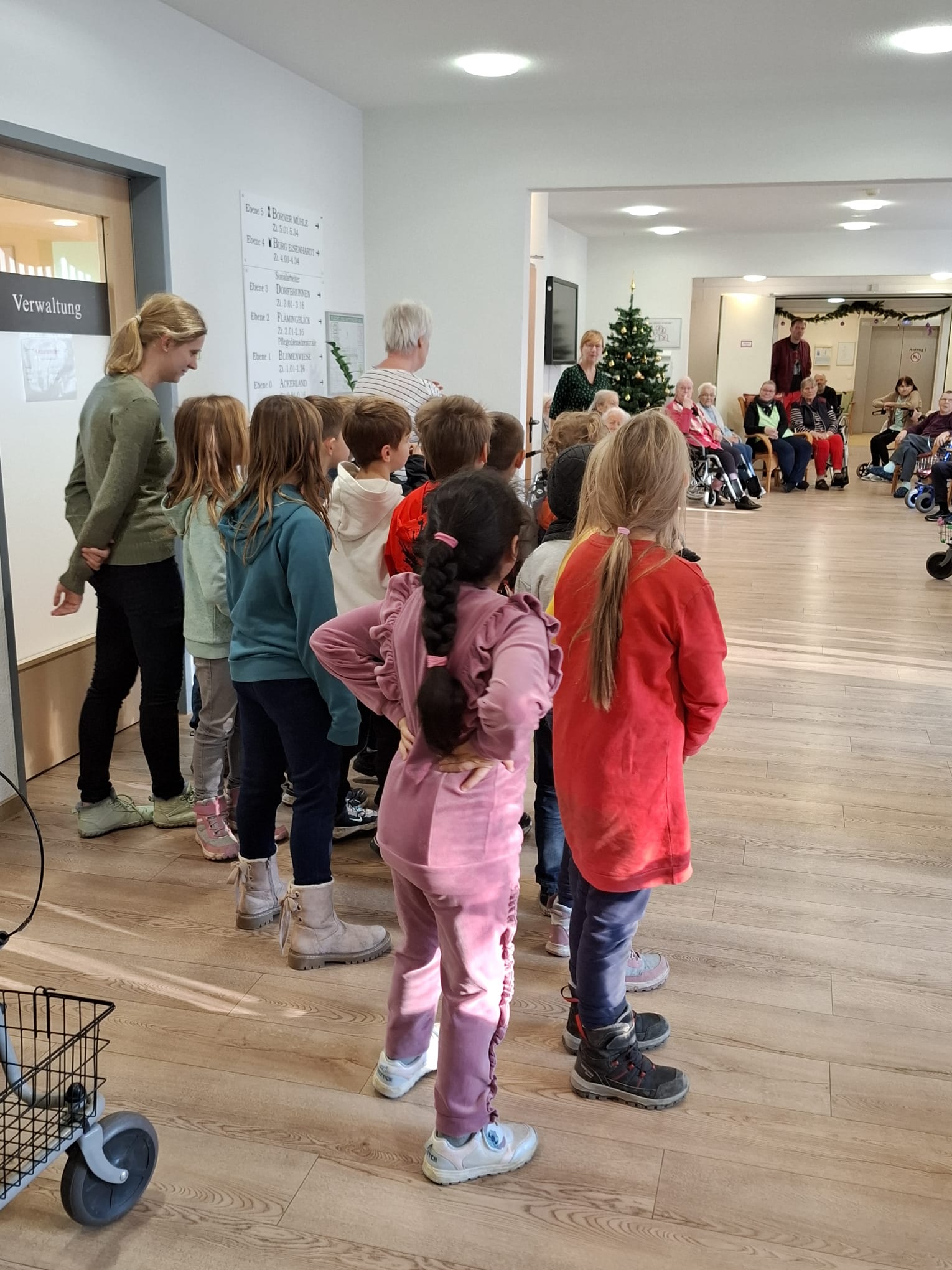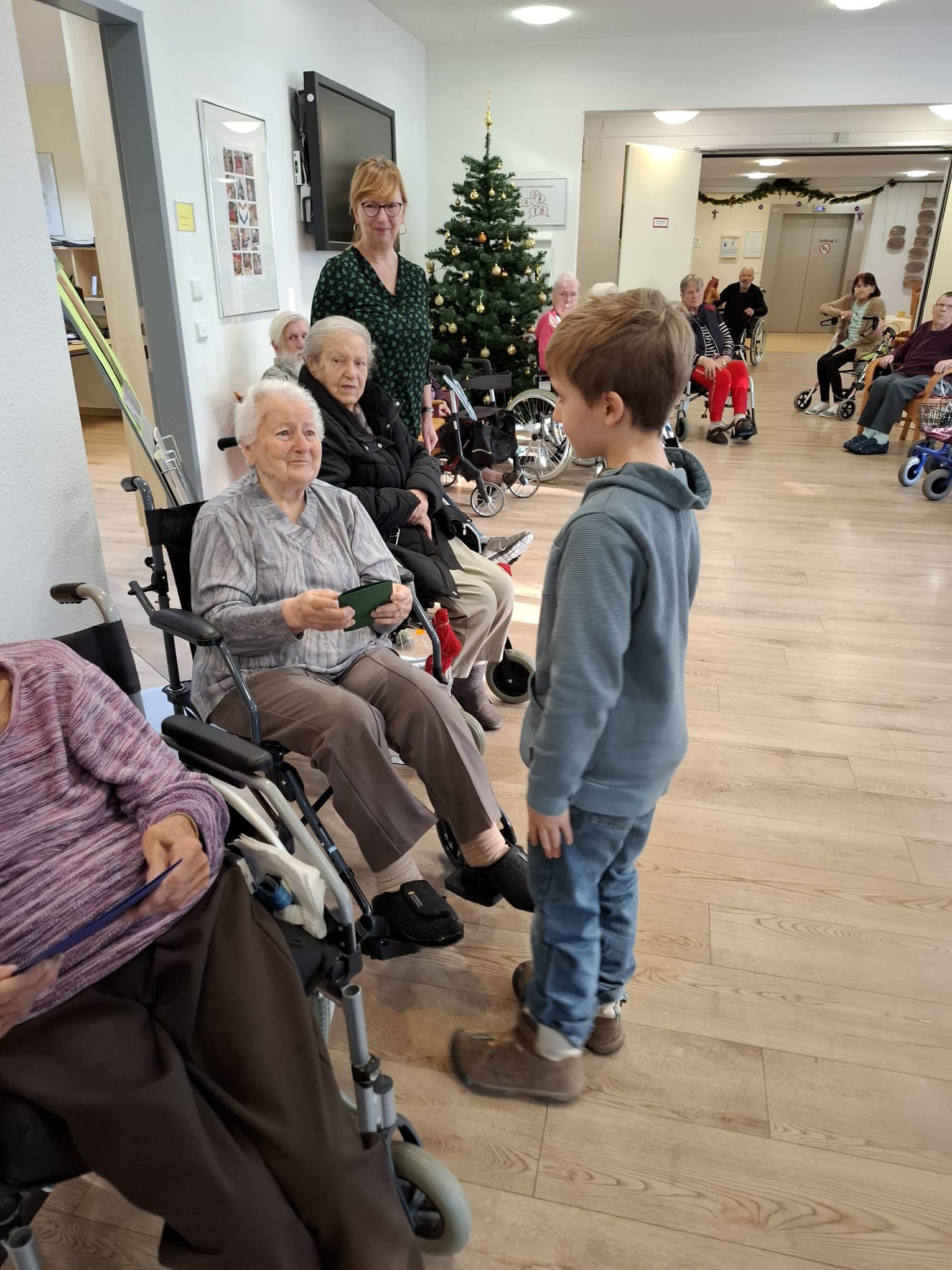 Eine besondere Rolle übernahm dabei die Klasse 2c. Die Kinder übergaben mit ihren Erzieherinnen Frau Opitz und Frau Bessert die Weihnachtspost persönlich. Am Übergabetag machten sie sich gemeinsam zum Seniorenheim auf den Weg und wurden dort herzlich empfangen. Die Kinder sangen zwei Weihnachtslieder. Die Bewohnerinnen und Bewohner stimmten spontan mit ein, wodurch ein wunderbarer gemeinsamer Moment entstand. Die Senioren freuten sich über die persönlichen Worte und die Mühe, die die Kinder in ihre Karten gesteckt hatten.