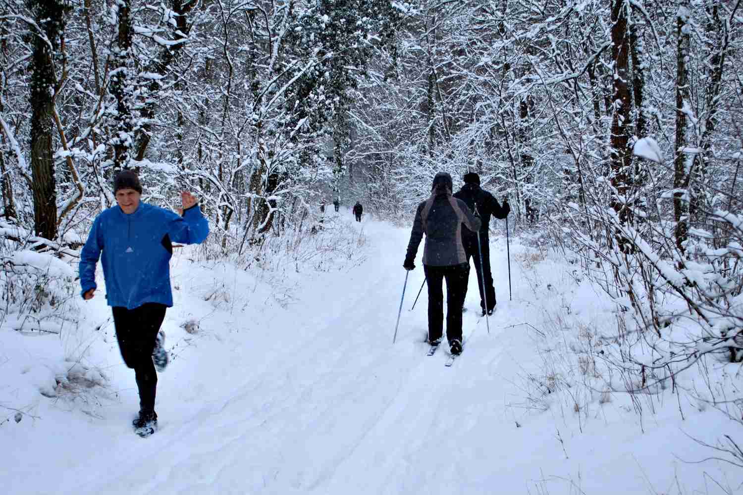 Aber ansonsten waren alle begeistert von diesem Winterwunderland, besonders die Kinder. Einige der jüngsten sahen sicher zum ersten Mal Schnee. Wer nicht unbedingt laufen wollte, machte einen ausgedehnten Spaziergang. Viele kamen ganz in Familie mit Kindern, Hunden und Schlitten. Einige wie Bill Nickl waren auf Ski umgestiegen. Er lebt schon mehr als 30 Jahre im Fläming. „Früher bin ich noch öfter mit Skiern durch die Wälder gefahren“, erinnert er sich. Aber in den letzten Jahren herrschte selbst im Fläming Schneemangel. Und so musste man sich auch an die Ski erst wieder gewöhnen.