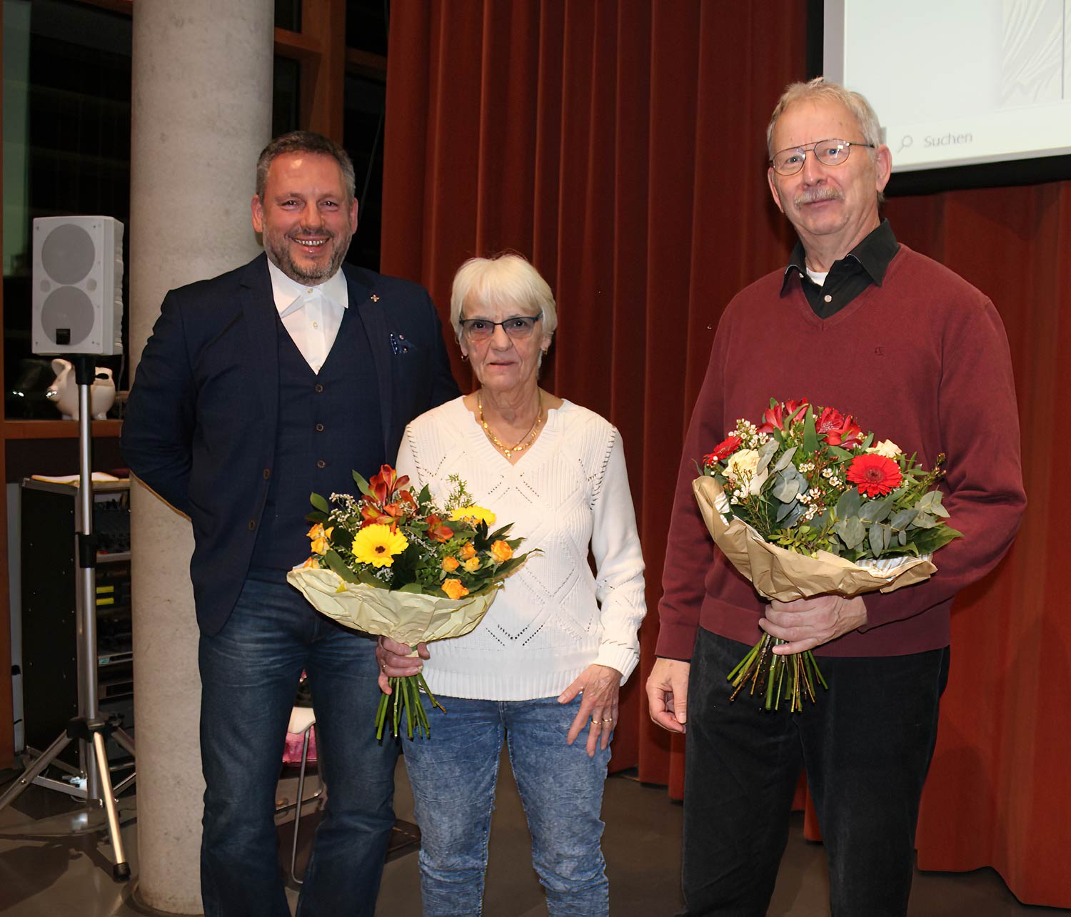 Beide erhielten aus den Händen vom Bürgermeister jeweils einen Blumenstrauß.